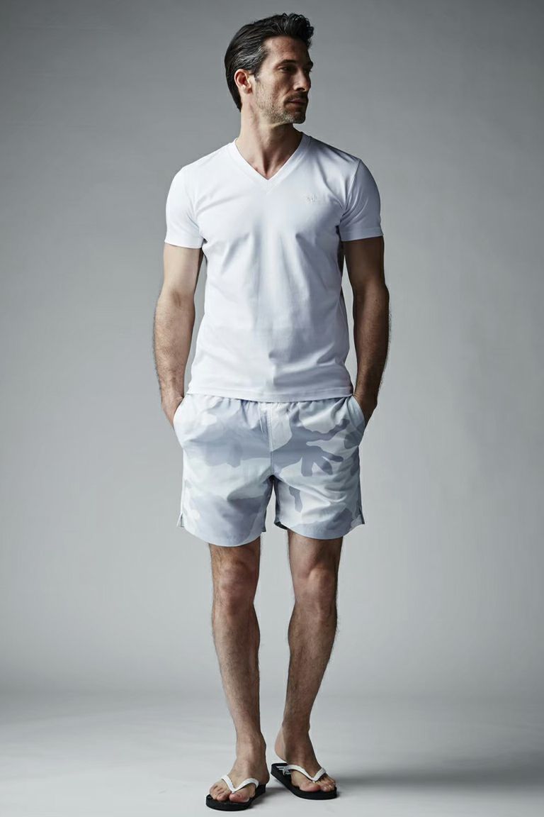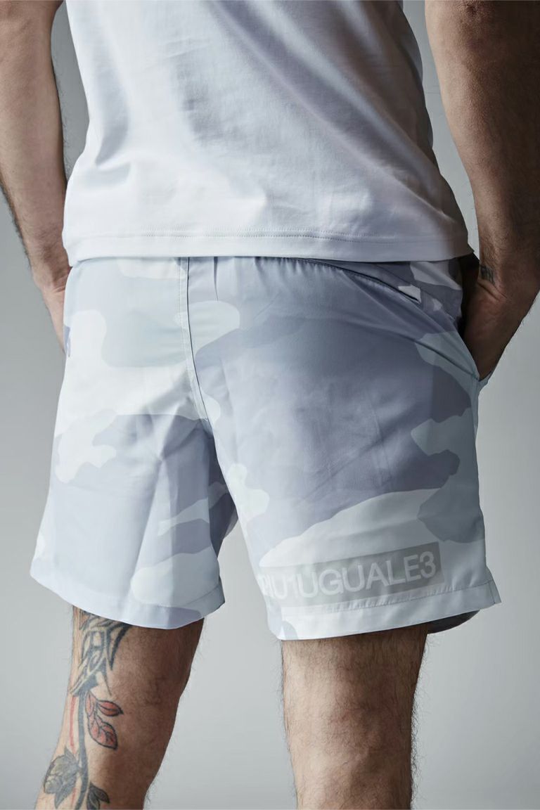 [SWIM SHORTS] DEREK ROSEのリゾートコレクションの中心であるスイムショーツを選定し、 1PIU1UGUALE3完全別注で生産を依頼しました。 心地良さの体感を訴求し、非常に柔らかい生地と 縫目のないライナーで仕上げたスイムショーツです。 素材は速乾で柔らかな肌触りの生地を基布にし、 1PIU1UGUALE3オリジナルのカモフラージュ柄をご用意しました。 前身に「折鶴」、後身に「1PIU1UGUALE3」BOXロゴを 同色にてデジタルプリントしています。 開閉をコントロールできるピンロック付きファスナー、 縫い目のない優れたメッシュライナー、空気穴、掛け干しできる ループ付きで着心地のよさと機能性を訴求したデザインに仕上げています。 また、後身頃の切り替え、サイドスリットを採用し、 ウェスト部分をゴムにしドローストリングで調整可能にすることで、 フィット感を高めより着心地よく仕上げています。 ポリエステルは疎水性のため乾きが早いという特性があります。 ポリエステルはまた耐久性が高く洗濯を重ねても型崩れしません。 色落ちしない為洗濯を重ねても鮮やか色を保ちます。 シワになりにくく旅行にも最適です。 カビが生えにくい特性があります。 Camoプリント:昇華プリントを採用し、 DEREK ROSEの水着シリーズに採用しているプリント手法で スクリーンプリント同様の仕上りが可能です。