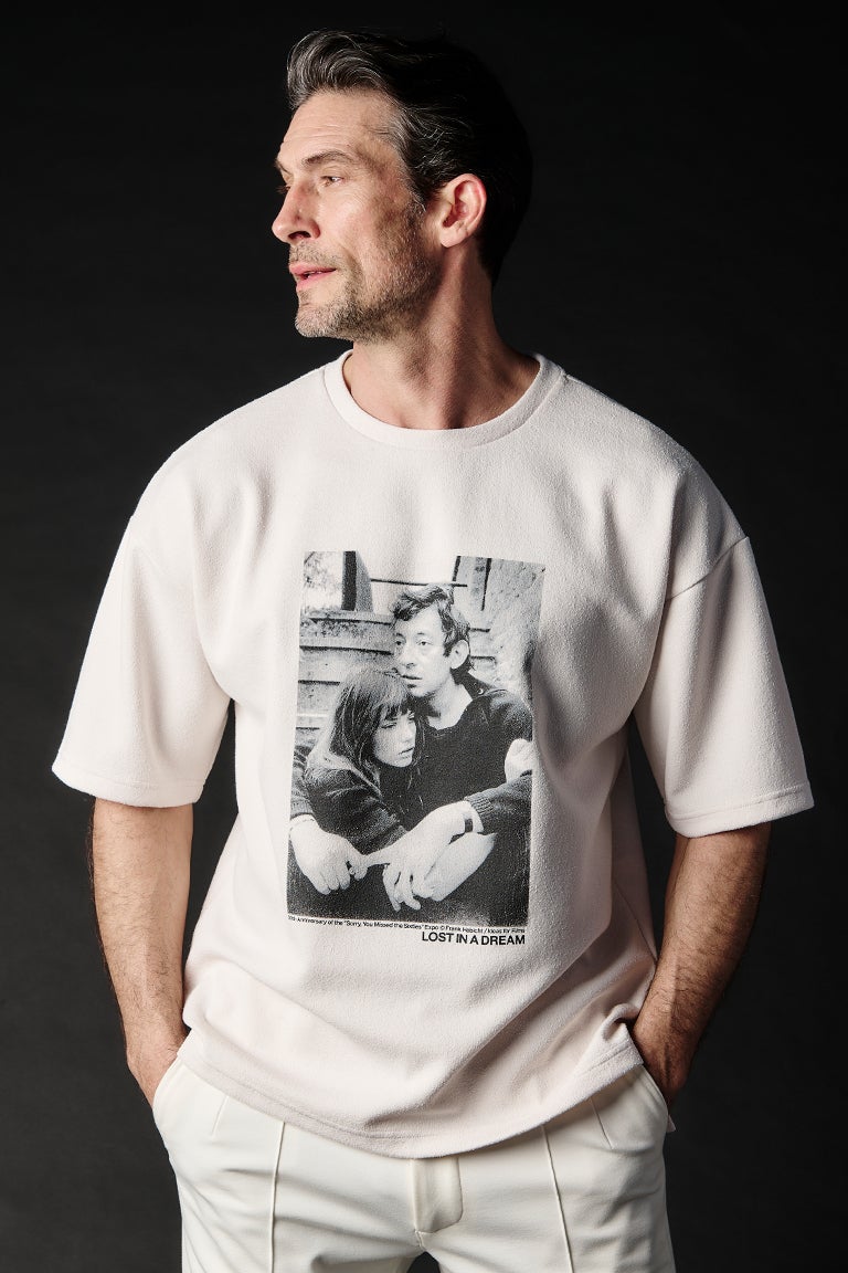 ジェーン・バーキンとセルジュゲンズブール。 2人が織りなしたあまりに純粋で親密な空気感。 その刹那を切り取ったポートレートを 1PIU1UGUALE3のフィルターを通して 再構築したスペシャルカプセルコレクション。