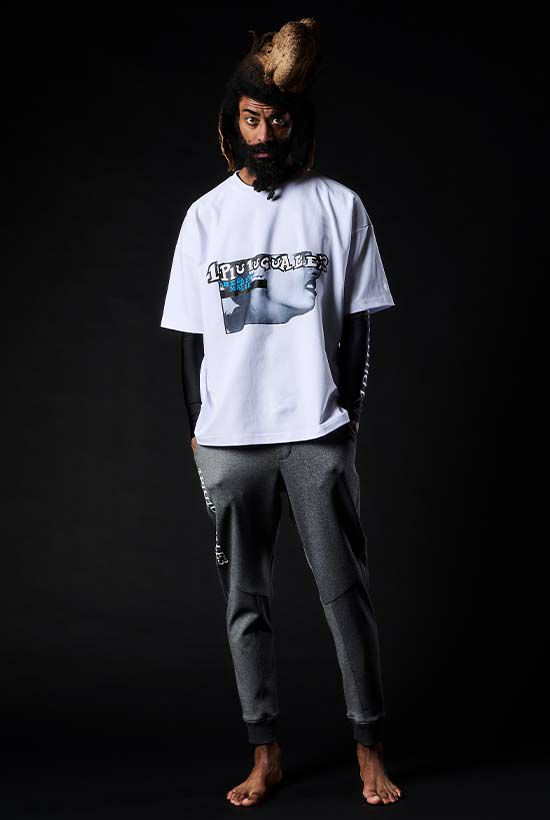 1PIU1UGUALE3 SPORT BRAND POLICY AND CREATION METHOD 1PIU1UGUALE3 SPORTではインラインコレクションとの 差別化を図りより追求した物作りをご提案します。 通常では取り入れる事の無い「難解なパターンを利用した」 変則デザインや機能性を重視した縫製仕様等、 細部に渡るプロダクト魂。 高密度ドビー/マイルドサテンストレッチ等 伸縮性だけでなく「黒」が際立つ素材を中心に 一目で区別する事ができる 「違いを生み出した」コレクション。 全ての品番で生産制限を設け、 展示会での発注分のみ。 「良いモノは伝わる」至極当然な 在り方を現代に継承する。 113 SPORT定番となるAIR BOOST JERSEY素材をベースとしたBIG CREW。 THESAINT MAFIAデザインを先行させた※ミクスドメディア※SAVE THE FUTUREアートワークをフロントにプリント。 バックには1PIU1UGUALE3 SPORT LOGOのツートンカラーをストレッチ発砲プリント。