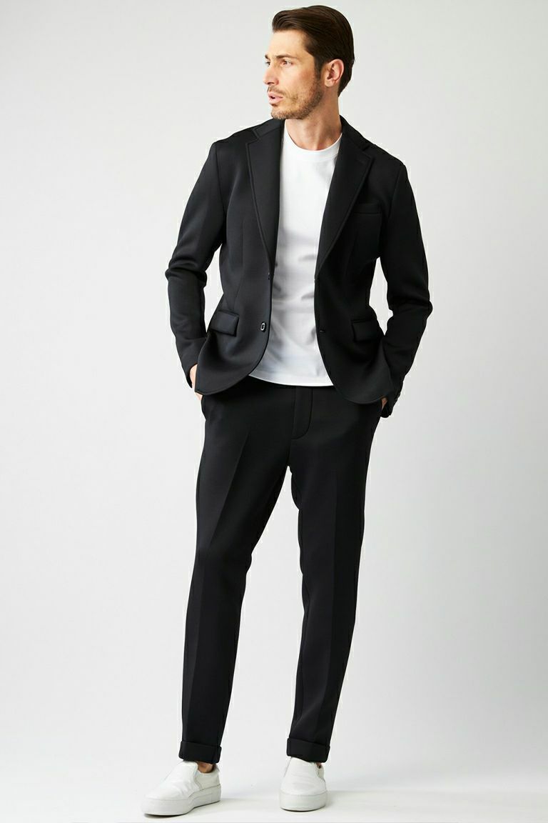 どんな場面にも最適なセットアップは 最高の素材とシルエットを追求した スッキリとした細身な仕上がりです。 特別モデルのみのオリジナルディテールは ラグジュアリーで、エレガントさを醸します。 高機能にしてシンプルを極めた Comfort & Stylishと呼べる逸品です。 インラインでも例を見ない、 本企画のみ総裏仕立てを採用した たいへん贅沢な仕上がりです。 特殊なプリント技術で 1PIU1UGUALE3ロゴを斜めに配した 総柄のオリジナル生地を作成し、 軽さと通気性を備える為 パンチング加工を施しました。 左胸ポケット内側にも同素材を使用、 引き出すことでポケットチーフの様な アクセントを加えられ、ドレス感ある 上品な印象を醸し出すことができます。 全てのボタンは1piu1uguale3ロゴ入りで 本水牛削り出しの特注ボタンです。 ディテール、シルエット、ファブリック 全てが兼ね備わった限定セットアップは 他と一線を画する渾身の仕上がりです。