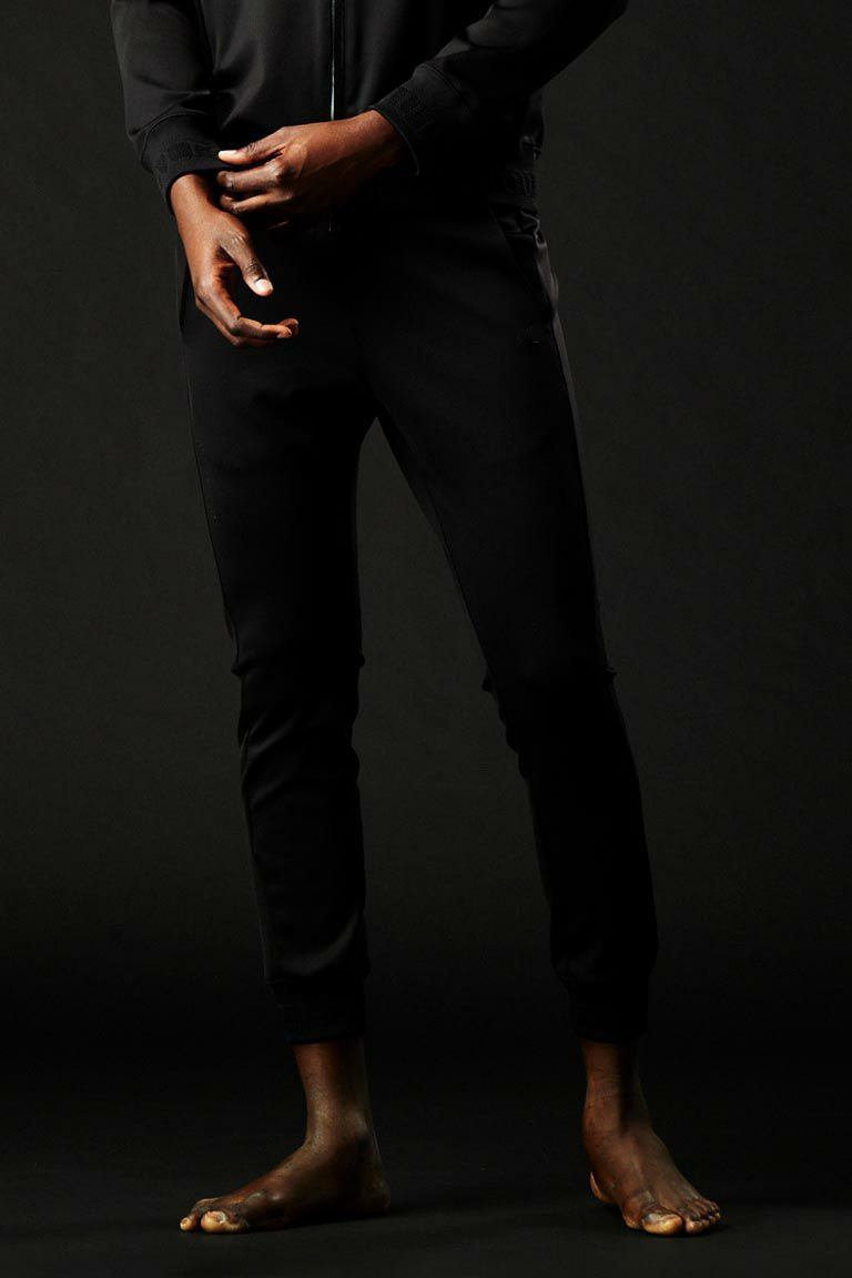 「至高の肌触りと超絶スムースな機能素材」 PREMIUM BOOST JERSEY。 極細の合繊繊維にハイパーストレッチ糸をプレーティングし、 圧縮加工を施すことで、高密度かつ力強いキックバックを実現しました。 本プロジェクトの始動当初より繰り返しアップデートされてきた ハイパーストレッチシリーズの新素材となるコレクション。 究極の肌触りと鋭い伸縮性を兼ね備えた最新素材を使用しています。 吸水速乾、UV軽減、冷感接触、上質さと機能性を高い次元で両立させ、 完全ノンストレスな着心地を提供します。 前作から素材と資材を大幅にグレードアップ。 厳選された素材が生み出す風合いは、触れるだけでその品質の高さを実感させます。 パターン数を増やし、立体的な設計を追求。 フィット感が向上し、抜群の伸縮性を生み出します。 縫製技術の精度、仕上がりの美しさ含め極上のディテールワークを実現しました。 1PIU1UGUALE3 SPORTを象徴する名作「SOLID RIB」が、 さらなる進化を遂げて新たなデザインで登場。 膝下から裾にかけて描かれる美しいテーパードシルエットは、 緻密なパターン設計と妥協なき構造により完成された、究極の仕上がりです。
