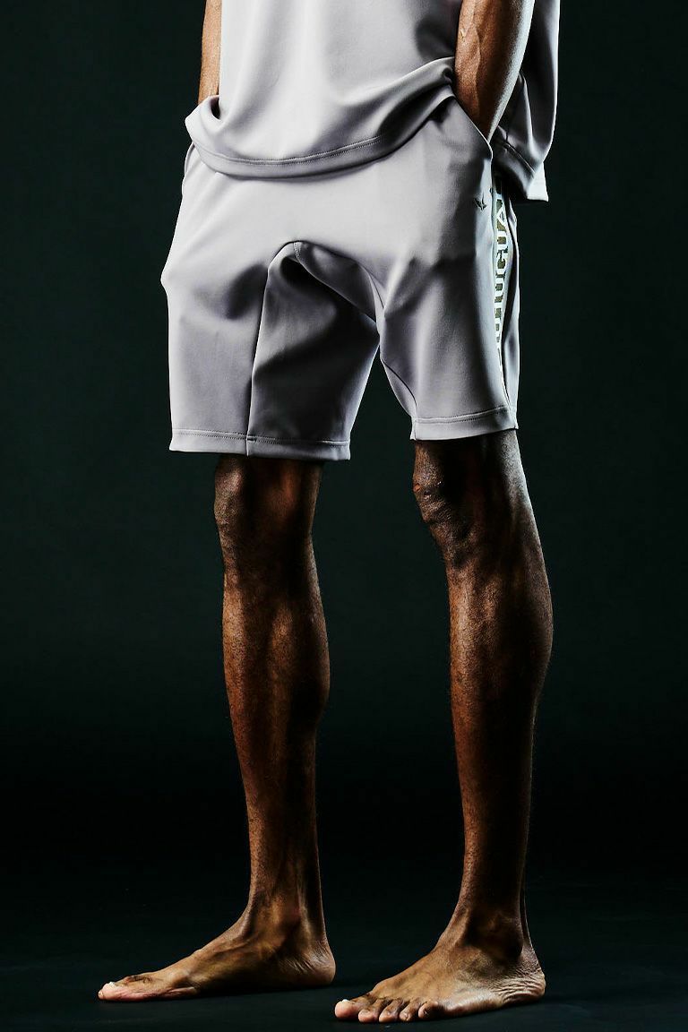 113 SPOR限定のワイドショーツモデル。フロント面をハギなしで形成し気持ち腰を落として着用することで