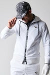 パーカー袖口とパンツ裾部分のリブ仕様は細かいステッチを採用することで、