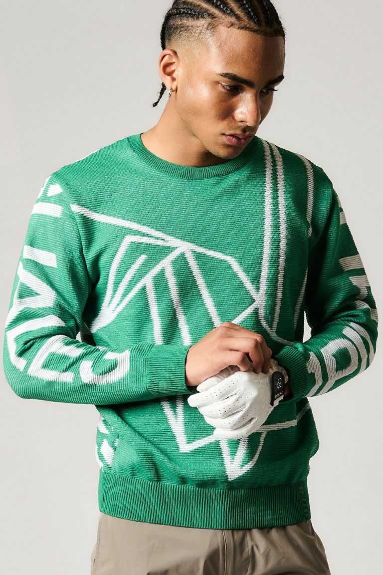 ジャガードにて表現したインパクトあるクルーネックニット。