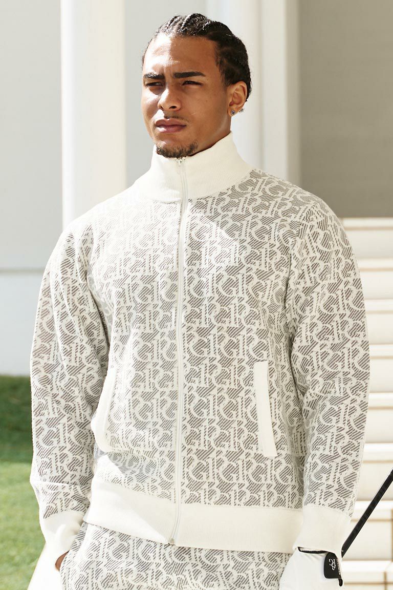 ポリエステルの軽さとシワになりにくい特性を活かしたニットセットアップ。