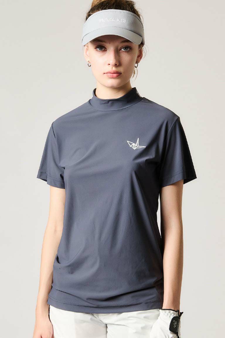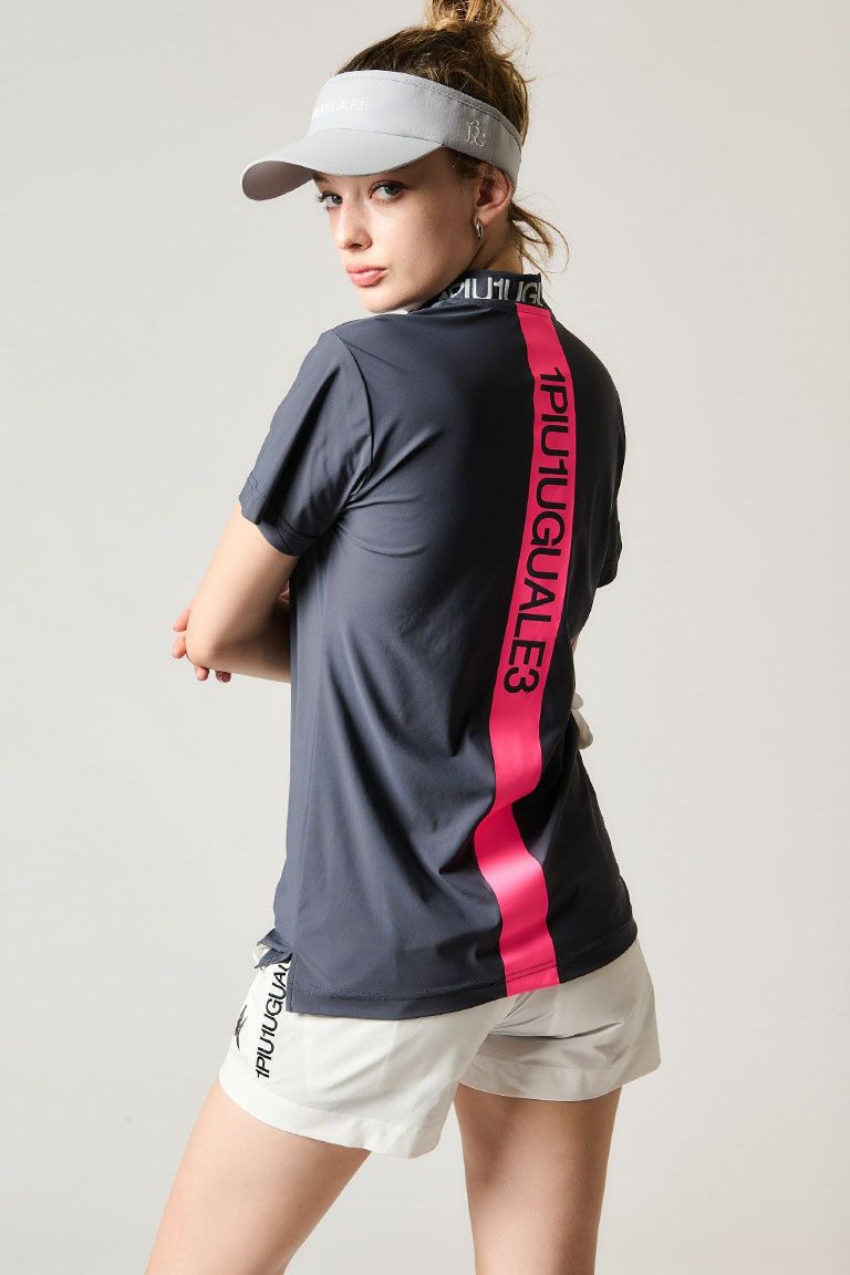 LADIES' S/S MOCK NECK NEON BACK TAPE[GRAY]