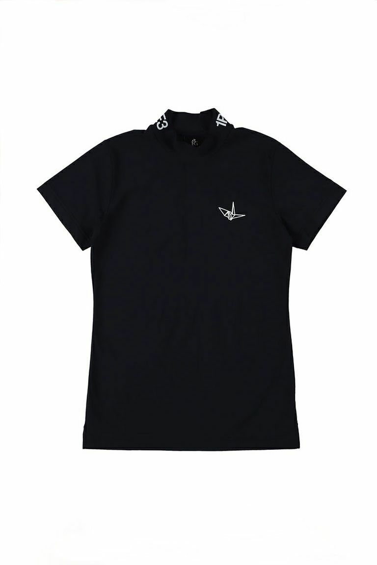 LADIES' S/S MOCK NECK NEON BACK TAPE[BLACK]