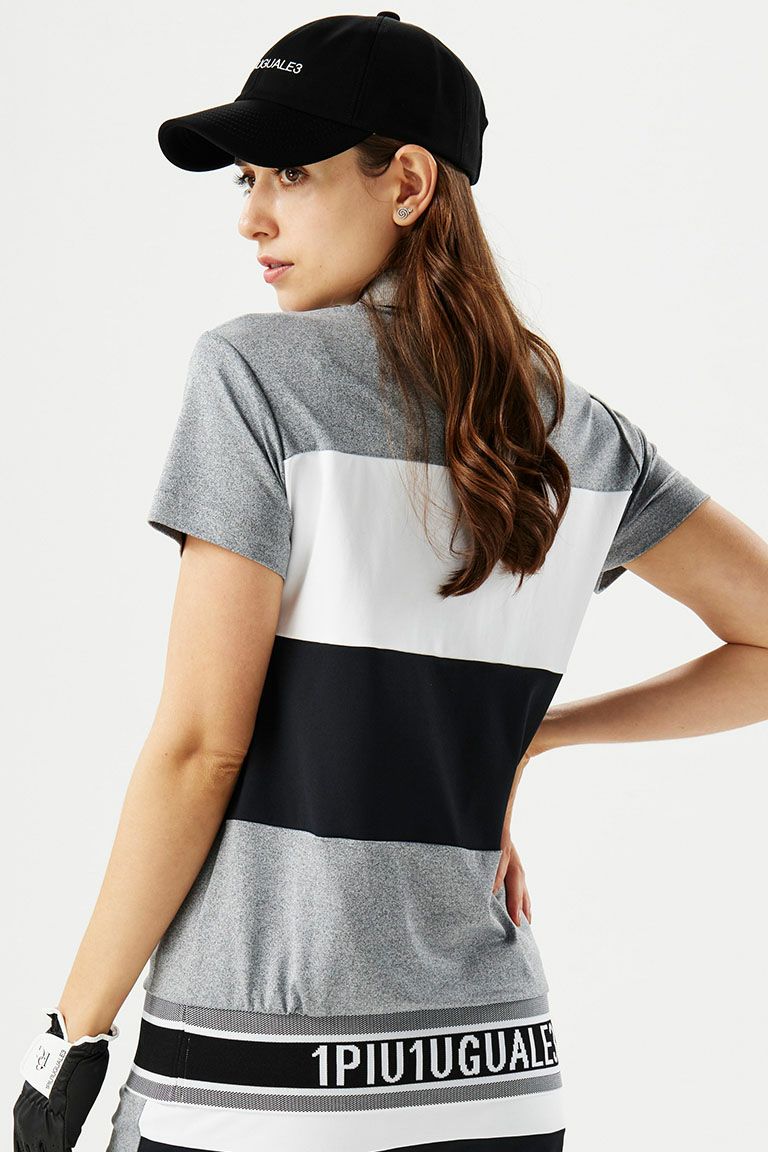 LADIES' S/S POLO SPORTS BORDER[BLACK]
