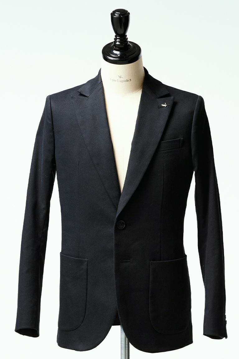 1960~70’のテーラードジャケットを検証し クラシックなディテール踏襲し素材使いと デザインにより構築したテーラードコレクション、 ダンディーセットアップ。 113 originalマニピュレーションにより 構築されたシルエットと着用感はスーツの 製図とは似て非なるものとなっています。 身頃裏にはストレッチ素材を使用。 シルエットを決めるアームホールの形状・カマの バランス全体のゆとり分量すべてを計算、 構築した至高のシルエットが生み出されています。 ジャケットはセミピークドラペルを採用した シングルを用意し、 パンツは他のセットアップのトラウザーより若干緩めの ワイドテーパードシルエットです。 クラシックな佇まいを崩すこと無くリラックス感を高めた デザインとなっています。 また、1piu1uguale3オリジナルの 折鶴ピンをラペルに付属しています。