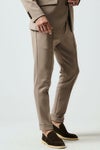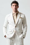 1PIU1UGUALE3より定番セットアップの登場です。 ジャケットは細身のピークド襟で、 腰ポケットはフラップ付きのクラシックなタイプです。 袖口は本切羽仕様で、左胸のポケット袋布は ペイズリー柄のキュプラ裏地を採用しており、 引っ張り出すとチーフとしてもご使用いただけます。 1piu1uguale3オリジナルの折鶴ピンを ラペルに付属しています。 パンツはセンタークリースが特徴的で、裾ダブル仕上げの 細身テーパードシルエットのスラックスです。 釦は1PIU1UGUALE3オリジナルの本水牛釦を採用しています。