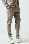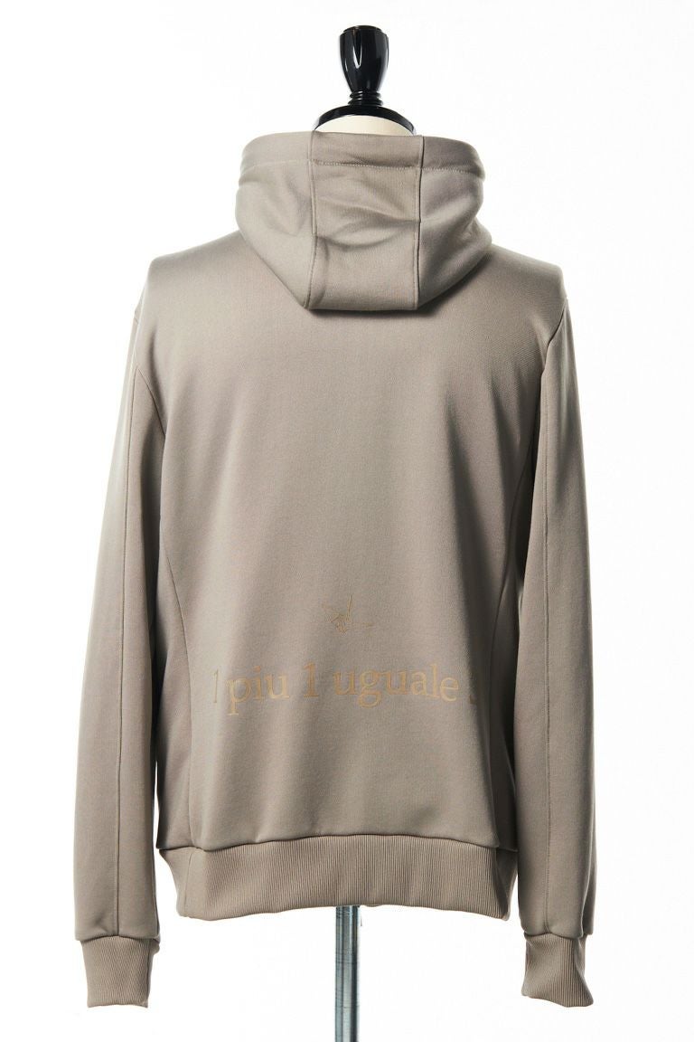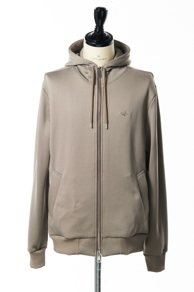 「折鶴」刺繍と「1piu1uguale3」小文字ロゴを効かせたシンプルなジャージセットアップです。