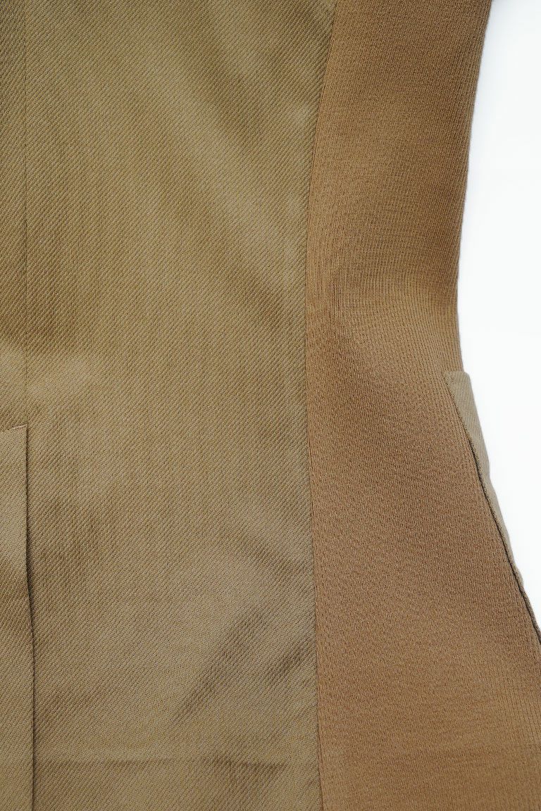クラシックなディテールはそのままに、ウエストベルトにテレコ(リブ)を採用。