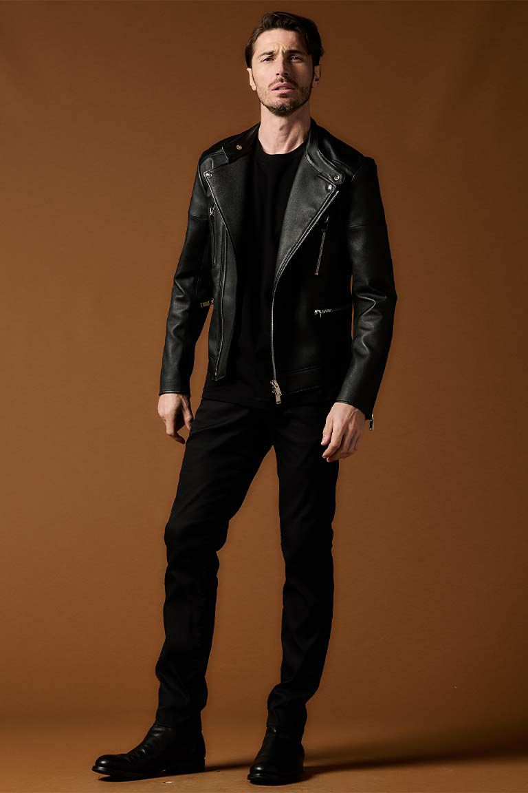 男らしいワイルド感とラグジュアリーな色っぽさを両立させた、至高のライダースに仕上げています。