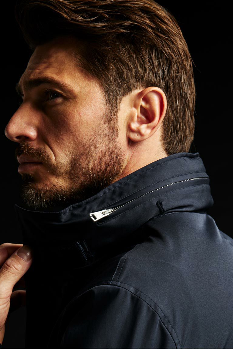 ディテールとしてはナイロン混紡素材、スタンドカラー、