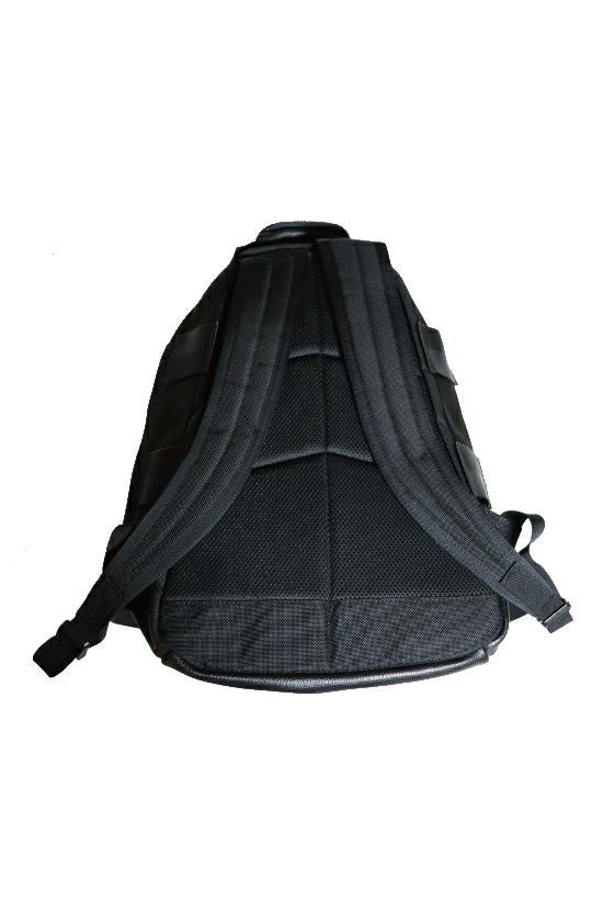 BRIEFINGとのコラボレーション”第2弾” 前回のコラボレーションから実に5年ぶり。 1PIU1UGUALE3×BRIEFINGの第2弾は 手頃な大きさのバックパックをリリース。 大きく開くメイン収納はA4サイズがすっきりと収まるサイズで タブレット等が収納できるポケットも装備。 前面のジップポケット内には取り外し可能なキーリングも付属しています。 バックパネルとハーネスには、クッション性が高く 通気性の良いメッシュ素材を採用。 メイン部分は米国陸軍御用達の耐久性に優れた BALISTIC NYLON(バリスティックナイロン)と コストを度外視した本革とのコンビ仕様。 使用する革は厳選した牛シボ革「黒」とオリジナルで作製した 牛ヌバック革「赤カモ」の2パターン展開。 革を日本国内で裁断した後に輸出し BRIEFING米国工場にて縫製を行うという コラボレーションならではのスペシャルなバックパックとなっています。 米軍規格の製品を生み出すBRIEFING ミルスペックと呼ばれる米国軍用規格に準拠した ヘビーデューティなパーツを用い タフなバッグを作り続けているバッグ・ブランド。 機能的かつ高感度なデザインと設計を元に 米国陸海軍、SWATなどのプロユースのプロダクトを手がける 米国内のファクトリーで製造されています。 ミリタリー仕様の耐久性と信頼性のある素材や パーツの良さを最大限に生かしながら デイリーユースで最適なディテールとサイズを与えられたアイテム達は ヘビーデューティ好きのみならず ビジネスシーンでも幅広い支持を得ています。