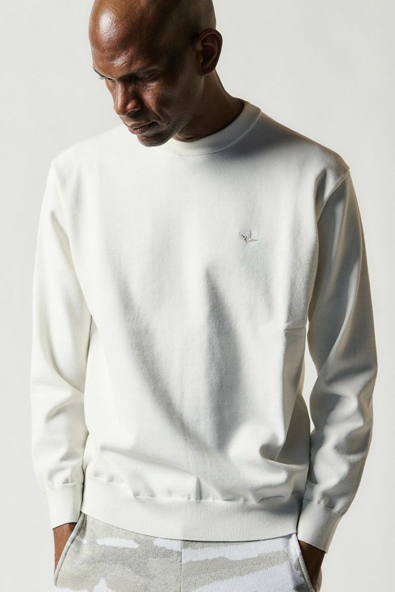 左胸にニット同色系のアイコン=折鶴を刺繍しています。