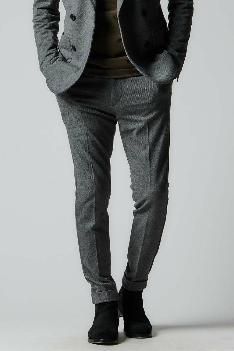 スラックスタイプのパンツはクラシックな佇まいを崩すこと無く実用性を高めた仕様となっています。