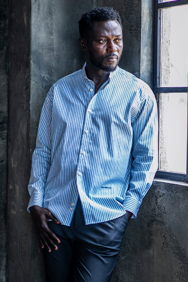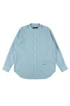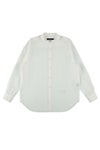 1PIU1UGUALE3よりノーカラー(バンドカラー)の長袖BIG SHIRTSの発表です。 ドロップショルダーで身巾を十分にとったオーバーサイズシャツです。 裾はラウンドさせず、短過ぎず長過ぎない絶妙な丈感に仕上げています。 衿はやや小ぶりのレギュラーカラーです。 左前身裾部分に1PIU1UGUALE3大文字ロゴを同色刺繍しています。 釦はロゴ入り本水牛釦を採用しています。