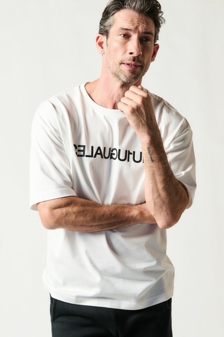 期中で不定期に発表している1PIU1UGUALE3 ミラーロゴ(反転)をフロントにプリントしています。