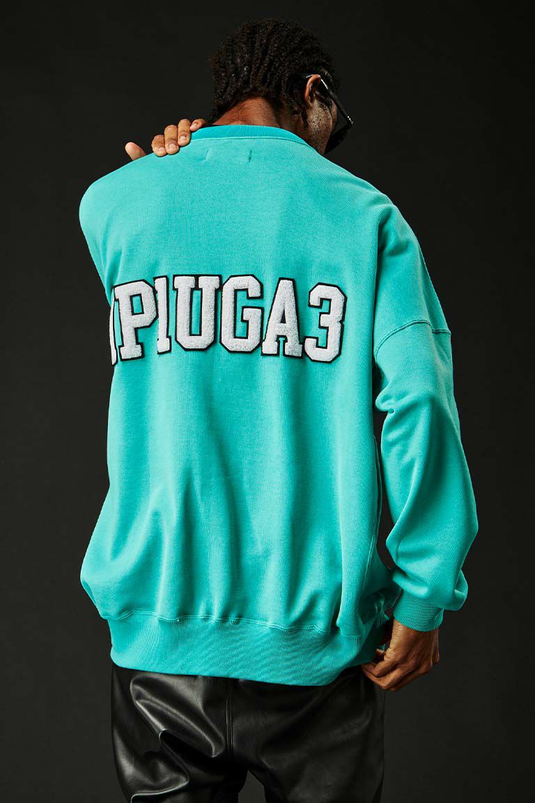 バックデザインには1PIU1IGUALE3 LOGOをデフォルメして「1PIUGA3」BIG LOGOをサガラ刺繍で表現。