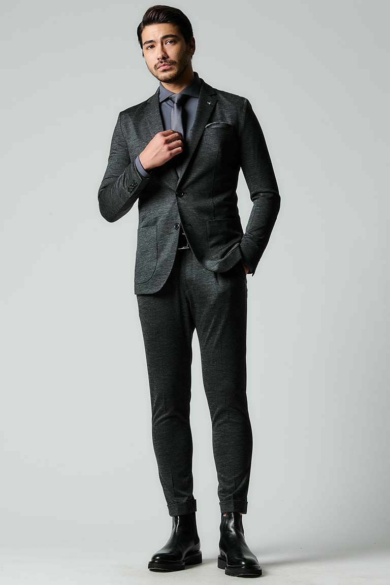 毎シーズン、人気の”旅ジャケ”シリーズを簡素化した、 「COMFY SET-UP」です。 清涼感があり、且つ伸縮することでストレスのない 着心地を堪能できるセットアップです。 1PIU1UGUALE3が得意とするシャープで美しいシルエットに加え 高機能ストレッチ素材と3Dパターン&立体裁断により細身ながら ストレスのない着心地をキープしてくれます。 また、1piu1uguale3オリジナルの折鶴ピンをラペルに付属しています。 インナーはシャツに限らず、ニットやカットソーと合わせても品格を保つことができ、 快適性とドレス性を兼ね備えシーンを選ばない万能セットアップに仕上げています。