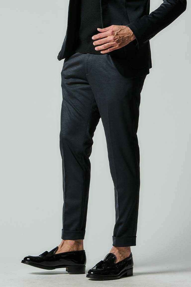 WOOL HYBRID BONDING JERSEY outer sarface : wool 100% base cloth : polyester 93% polyurethane 7% other : polyester 100% Face : W100 Back : P96 / Pu7 表に毛 100%、裏にポリエステル Pu、2つの生地をボンディングすることにより、 ウールジャージの色合いと風合いにより 新しいハリ感も持たせた高級感のあるハイブリッド素材です。