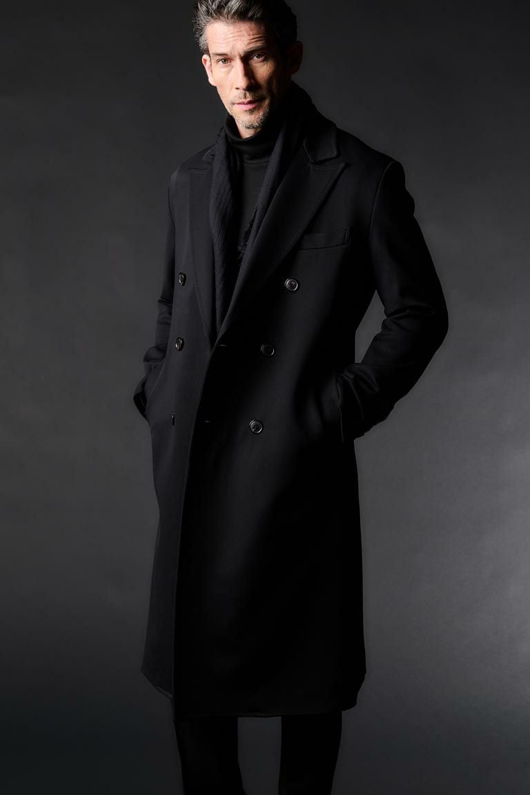 19世紀にチェスターフィールド伯爵がはじめて着た事が最も有力な由来とされ、 特にヴィクトリア時代下のイギリスでは男性の外套として流行したチェスターコート。 こちらはピークドワイドラペルでダブルブレスト仕様のチェスターコートです。 現在の日本ではあらゆるコートの中でも最も格式が高いにも関わらず、 フォーマルとして着ることはもちろん、 ビジネスやカジュアルとしても着こなすことができるので 非常に人気があるコートの一種になっています。 使いやすい腰の箱ポケットなど細部のディテールに クラシックな手法を取り入れた大人の一着に仕上げています。 釦は1PIU1UGUALE3ロゴ入りの本水牛釦を使用。 生産国:日本