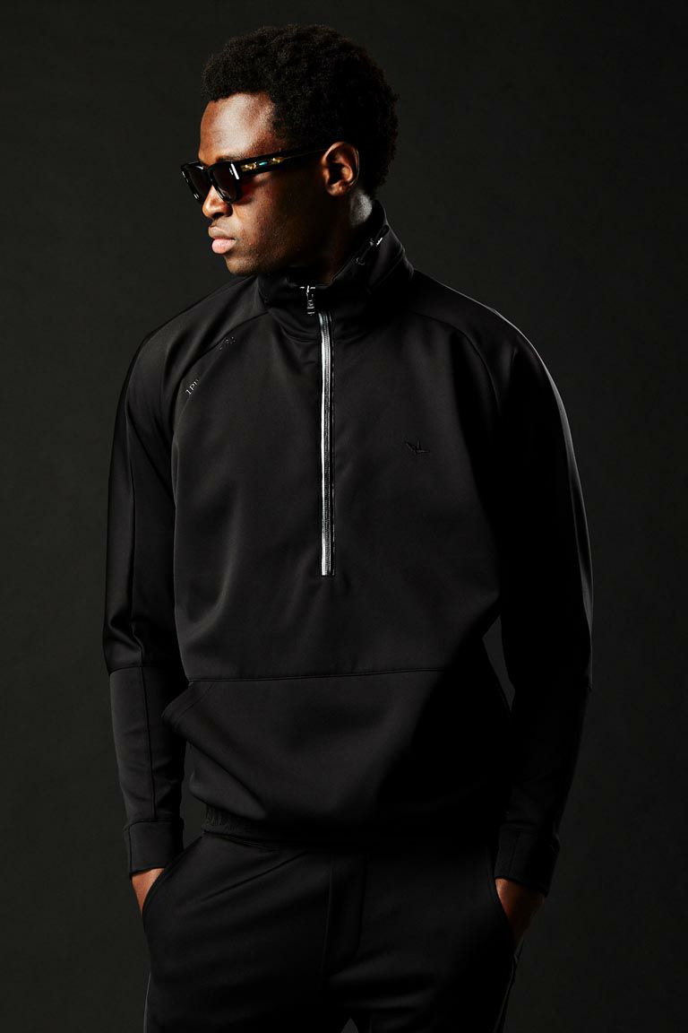 「至高の肌触りと超絶スムースな機能素材」 PREMIUM BOOST JERSEY。 極細合繊繊維にハイパーストレッチ糸をプレーディングし 圧縮加工をすることで高密度で力強いキックバックを実現。 本プロジェクト始動当初より繰り返しアップデートされる ハイパーストレッチシリーズの集大成コレクション。 2018年ファーストコレクションで発表されたHYBRID 3D STAND POが ルーズフィットシルエットに変更。 立体構造で形成されアームホールはドルマン形状に。 袖裾には内側を切り替え部分リブ仕様。 【ORIGINAL JACQUARD RIB使用】 113 SPORT専用に作成された特殊編みジャガードリブ 編み時を上下で組み替え3Dに浮き出た1PIU1UGALE3 LOGOが特徴。