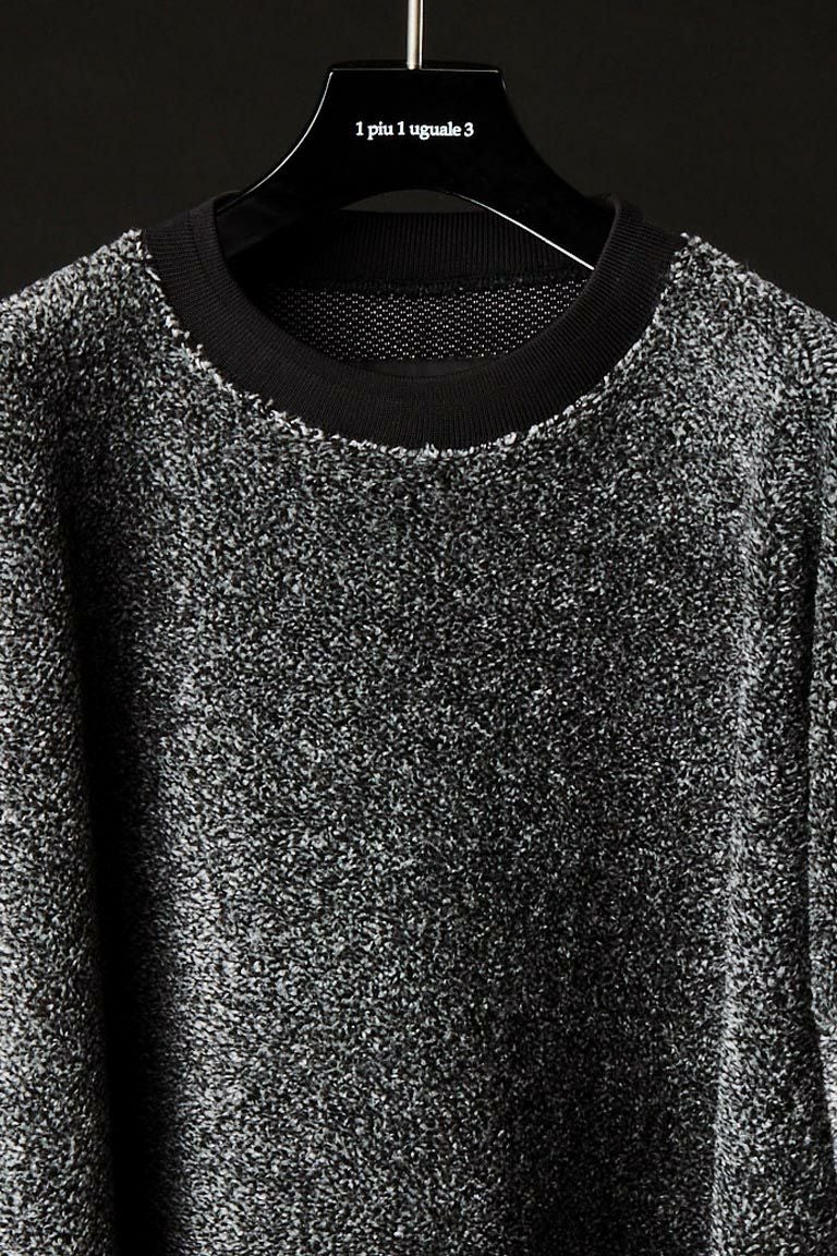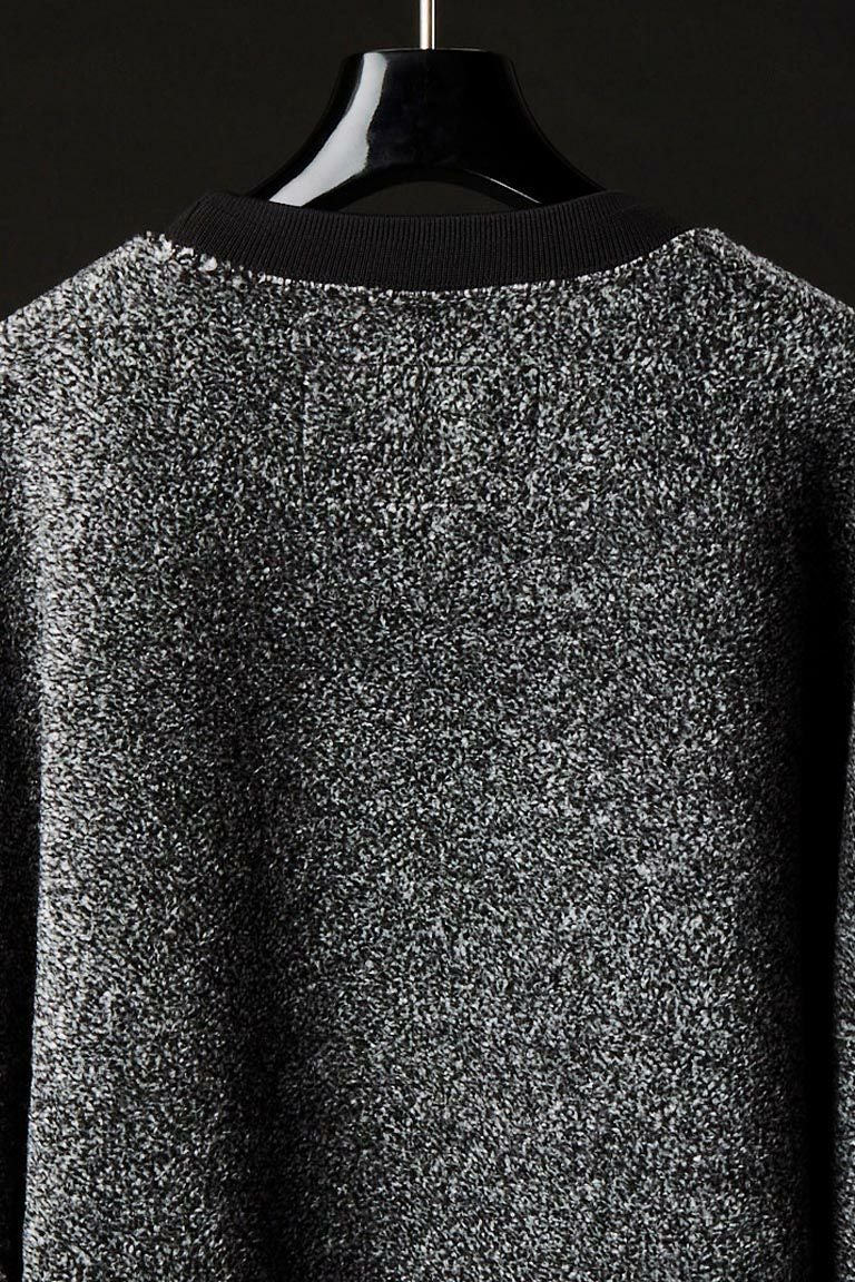 天幅を狭く引き締まるネックポイント、美しくドロップする ワイドパターン仕様に変更され、より大人のビッグシルエットに仕上げました。 ショルダーからアームにかけて美しくドロップする形状。 計算されたオーバーサイズスペック。 身頃素材には合繊糸でカール状に編み立てたBOA KNIT素材。 ナチュラルな伸縮性と軽量で滑らかな表情。 あらゆるシーンで活躍します。 BLACK/BK GREY MIXの2色展開。 後身頃には紀元前1世紀、古代ローマの詩人ホラティウスが詠んだ 「Carpe diem(カルペ・ディエム)」—— 「一日の花を摘め」「今を楽しめ」という言葉を3D刺繍により刻印。