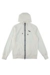 ジップアップパーカーはハイネック仕様のフードが立ち上がる設計で、