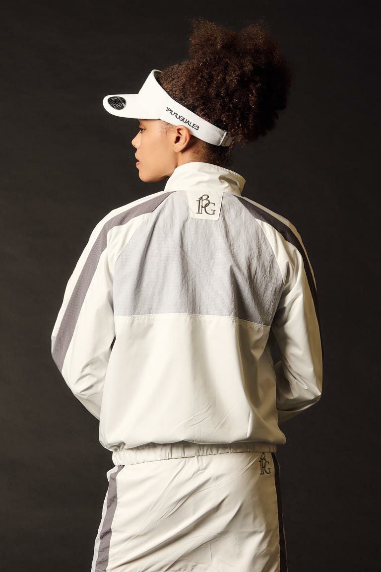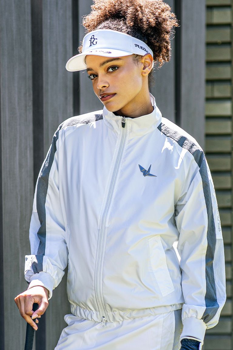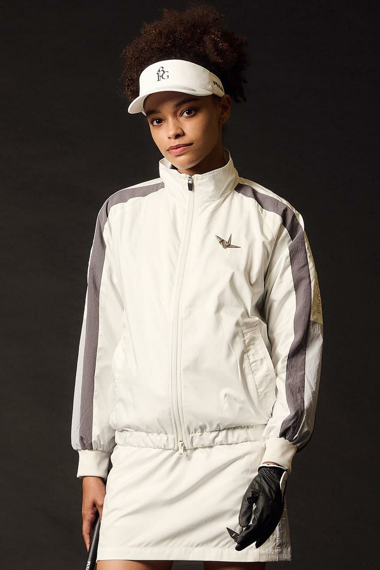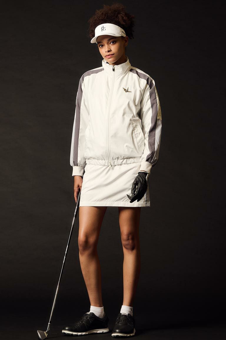 軽やかなナイロン素材で仕立てたレディースセットアップ。 異素材の調和が生む上質な軽快さが魅力です。 トラックジャケットはゆとりのある設計で、動きに寄り添いながらも優美なラインを描きます。 スカートはボックス型シルエットを採用し、ベルトループとドローコードを備えることで フィット感を微調整でき、スタイルを端正に整えます。 表地のシャリ感に対し、裏地には通気性に優れた滑らかなメッシュを使用し、 春夏秋のラウンドでも快適な着用感を実現。 サイドにはドットエアーのメッシュラインを施し、動きに合わせて上品なアクセントを添えます。 WHITEとBLACKの2色展開で、ゴルフからトレーニング、 日常まで幅広く活躍するセットアップです。 1PIU1UGUALE3 GOLF(ウノピゥウノウグァーレトレ ゴルフ) 日本から世界に向けて発信するブランドとして世界中の上質な素材を贅沢に使用し、 ラグジュアリーな商品をリリースし続ける1PIU1UGUALE3。 ハイエンドラグジュアリーブランドが提案する、高いデザイン性とスポーツの機能美を併せ持ち 上質を知る全てのプレイヤーの為のウエアとしてリリースいたします。 革新的なハイテク素材を採用し、ただ派手な物ではなくテーラーリングを得意とする 同ブランドならではの立体パターンにより、洗練された高いデザイン性と 最高のフィッティングを兼ね備え着る者全てに高揚感と優越感をもたらします。 【ワッペンロゴに関するご注意】 本製品に使用しているワッペンロゴ(鶴+113G)は熱圧着加工にて取り付けを行っておりますが、 上質な生地を採用している為、素材特有の滑らかさや洗濯環境の影響により まれにワッペンが剥がれやすくなる場合がございます。 ※万が一剥がれが生じた場合は、弊社にて修理対応を承りますのでお気軽にご連絡ください。