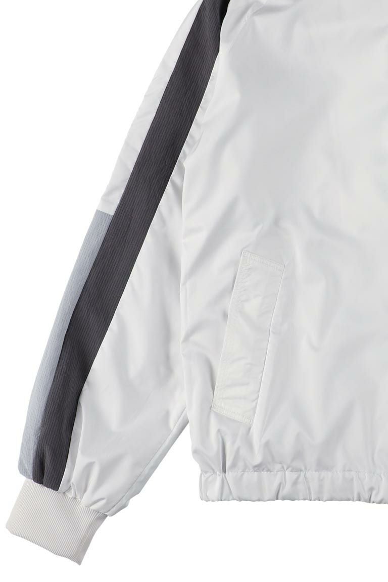 表地 : ポリエステル100% 別布 : ポリエステル100% 別布2 : ポリエステル100% リブ : ポリエステル96% ポリウレタン4% 50デニール/144フィラメントという極細のマイクロファイバーを高密度に編み上げた しなやかな加工糸タフタをベースにした次世代のウィンドブレーカー。 最大の特徴は、スイング時に最も熱がこもりやすい肩から袖、 そして背中にかけて戦略的に配置された「ドットエア(Dot Air)」素材とのハイブリッド構造です。 高密度素材による「防風性」を維持しながら、 通気性と吸水速乾性に優れたドットエアが衣服内のムレを瞬時に解放。 激しい動きに追従する2WAYストレッチ機能とともに、 常に理想的な衣服内コンディションをキープします。 意匠面では、フラットになりがちなタフタ素材にあえてシワ加工を施すことで、 奥行きのある豊かな表情と立体的なアクセントをプラス。 裏地の軽量メッシュが汗によるベタつきを徹底して排除し、 両袖に配されたブランドロゴ刺繍がスイングの瞬間に圧倒的な気品を放ちます。 機能美をインテリジェンスに昇華させ、コース上での立ち振る舞いまでをも エレガントに変える実戦派エグゼクティブのための一着です。