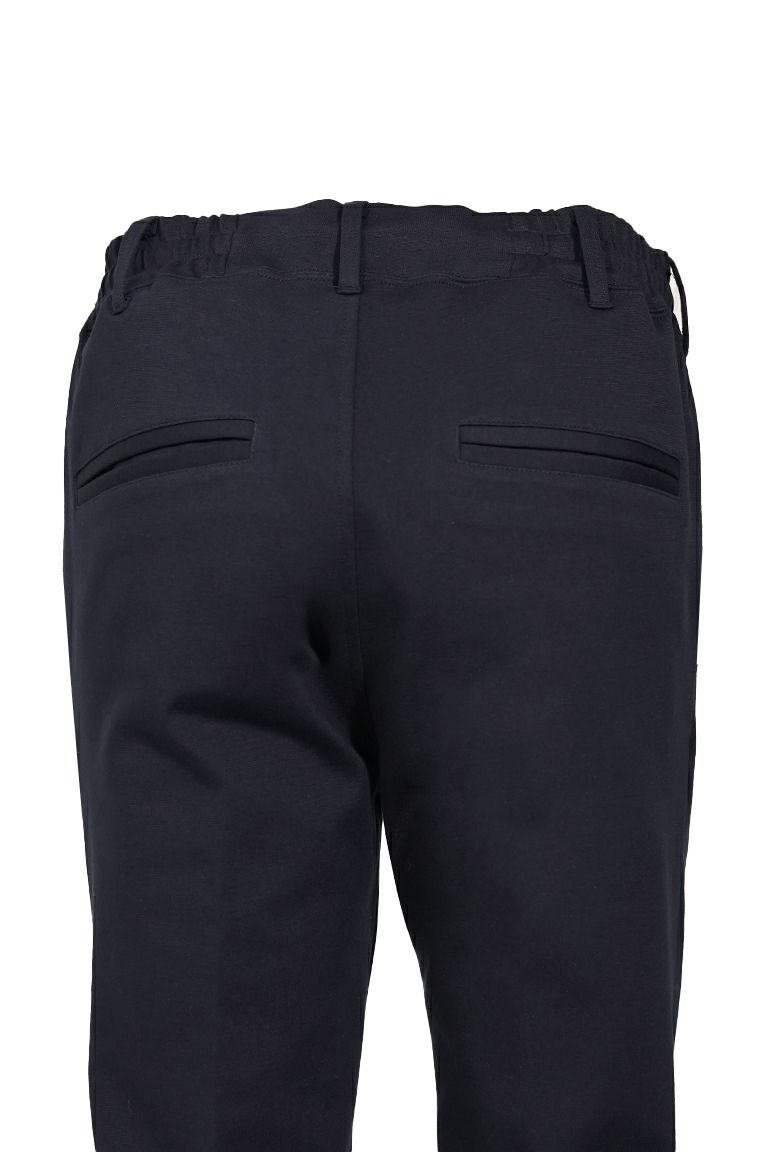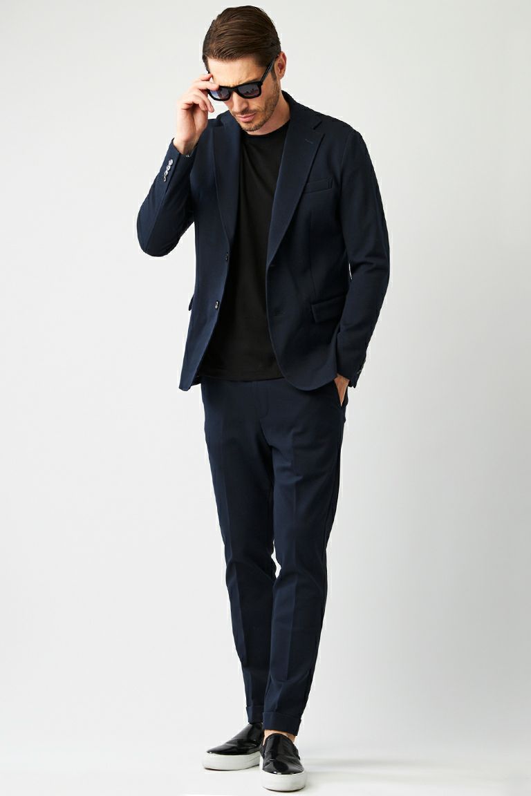 パンツはスラックスでありながら ウエスト内側にドローコードを配した イージースラックス仕様です。 オンオフ問わず幅広いシーンに対応できる 大人の為のユーティリティスタイルへと 見事に昇華させた仕上がりです。 ジャケット同様に使用したファブリックは 長時間の着用でも疲れず着崩れませんので スマートなスタイルを維持してくれます。 イージースラックス仕様に仕立て ビジネスシーン、ゴルフや会食など タウンユースでの着用も幅広くこなせる フレキシブルなセットアップです。 ディテール、シルエット、ファブリック 全てが兼ね備わった限定セットアップは 他と一線を画する渾身の仕上がりです。