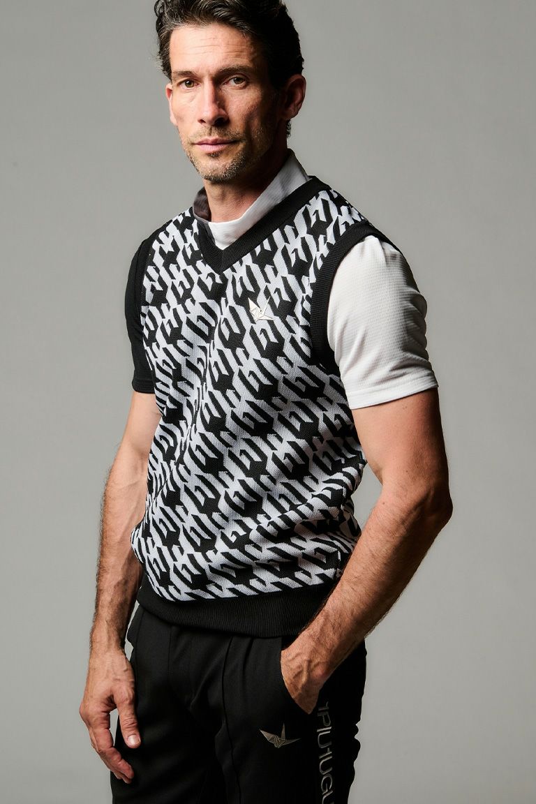 1PIU1UGUALE3 GOLF×戸賀敬城 SPECIAL MODEL Vol.5 ドライタッチで春夏らしい清涼感を持ったニットベスト。 ポロシャツやモックネックに千鳥格子柄のベストを重ねることで、 より紳士のスポーツらしい英国調のフォーマル感が生まれます。 千鳥柄は1piu1uguale3らしい折鶴を表現しています。 1PIU1UGUALE3 GOLF(ウノピゥウノウグァーレトレ ゴルフ) 日本から世界に向けて発信するブランドとして世界中の上質な素材を贅沢に使用し、 ラグジュアリーな商品をリリースし続ける1PIU1UGUALE3。 ハイエンドラグジュアリーブランドが提案する、高いデザイン性とスポーツの機能美を併せ持ち 上質を知る全てのプレイヤーの為のウェアとしてリリースいたします。 革新的なハイテク素材を採用し、ただ派手な物ではなくテーラーリングを得意とする 同ブランドならではの立体パターンにより、洗練された高いデザイン性と 最高のフィッティングを兼ね備え着る者全てに高揚感と優越感をもたらします。