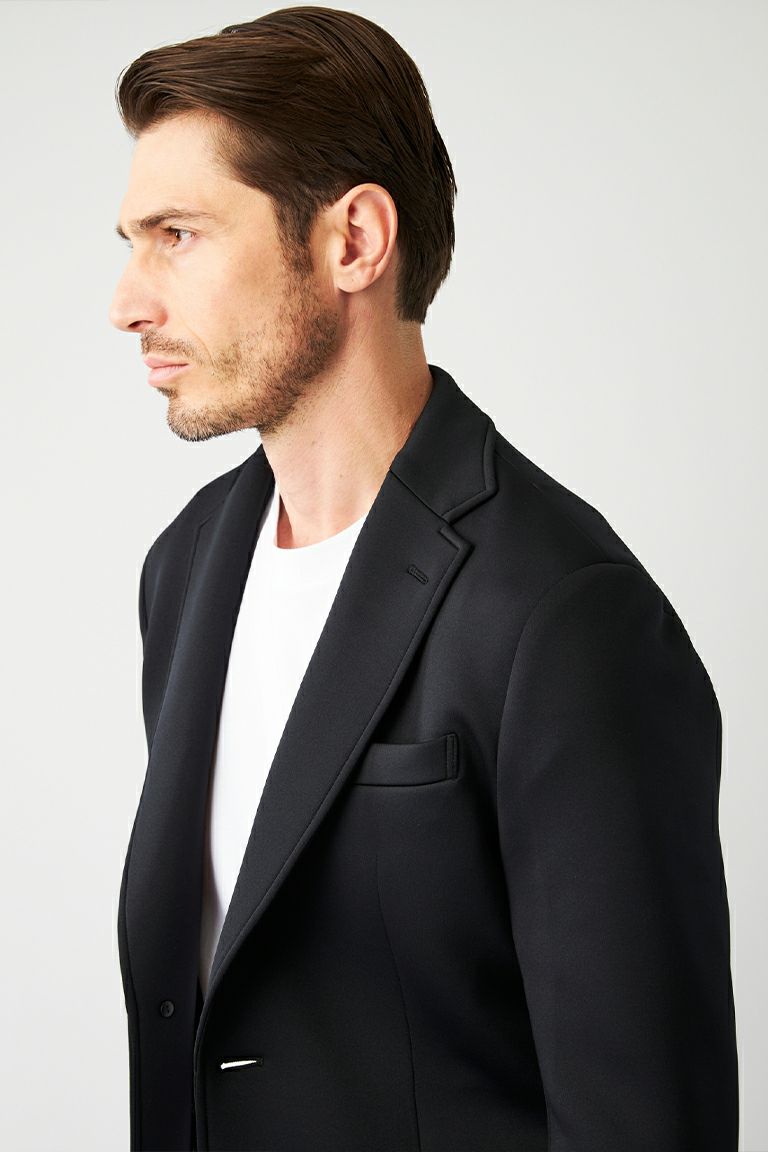 どんな場面にも最適なセットアップは 最高の素材とシルエットを追求した スッキリとした細身な仕上がりです。 特別モデルのみのオリジナルディテールは ラグジュアリーで、エレガントさを醸します。 高機能にしてシンプルを極めた Comfort & Stylishと呼べる逸品です。 インラインでも例を見ない、 本企画のみ総裏仕立てを採用した たいへん贅沢な仕上がりです。 特殊なプリント技術で 1PIU1UGUALE3ロゴを斜めに配した 総柄のオリジナル生地を作成し、 軽さと通気性を備える為 パンチング加工を施しました。 左胸ポケット内側にも同素材を使用、 引き出すことでポケットチーフの様な アクセントを加えられ、ドレス感ある 上品な印象を醸し出すことができます。 全てのボタンは1piu1uguale3ロゴ入りで 本水牛削り出しの特注ボタンです。 ディテール、シルエット、ファブリック 全てが兼ね備わった限定セットアップは 他と一線を画する渾身の仕上がりです。