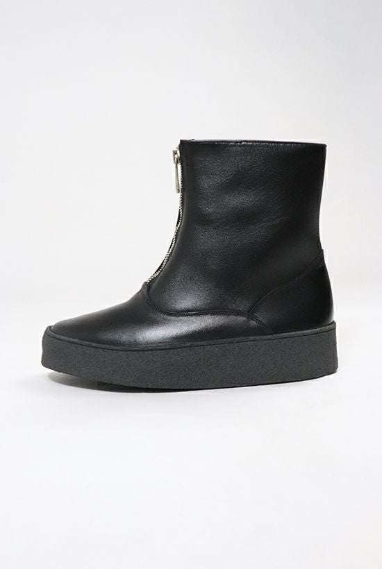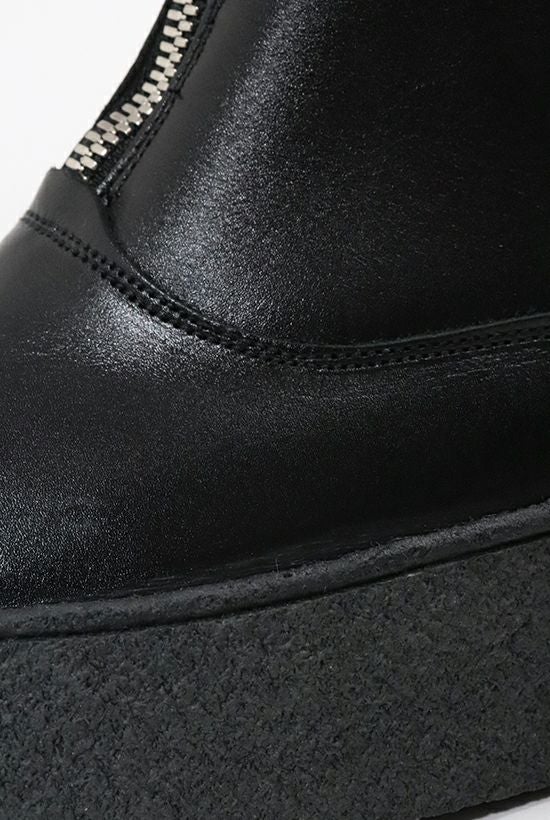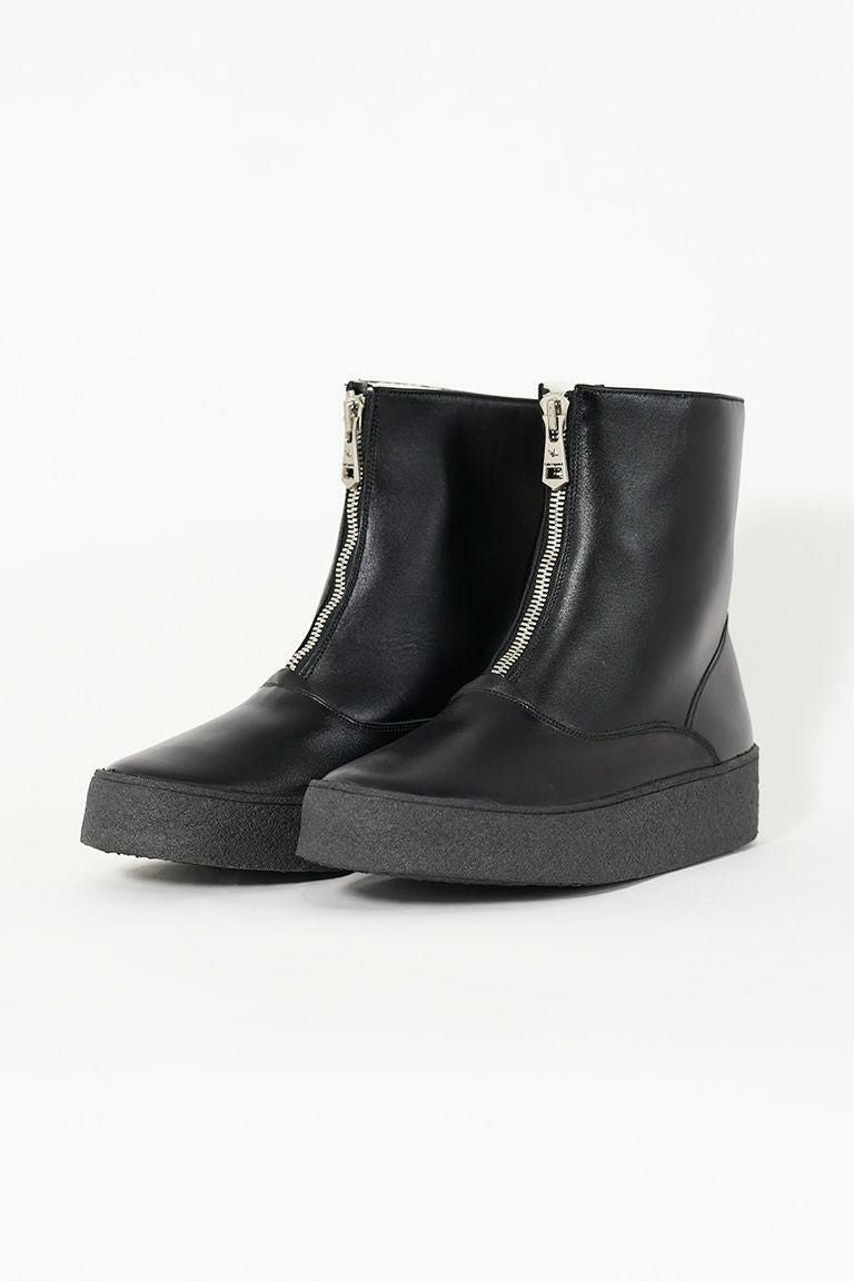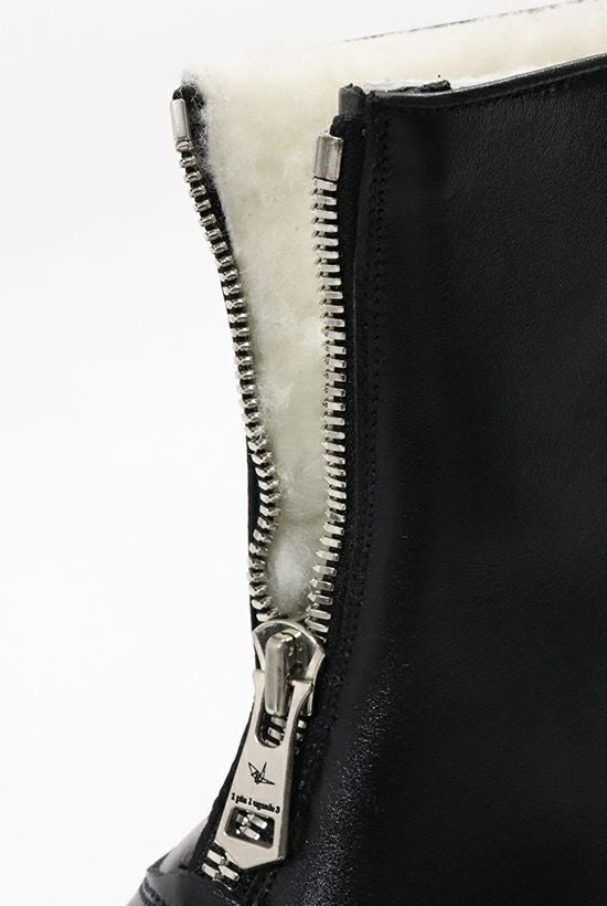 Sanders & Sanders Ltd. は1873年に ウィリアム・サンダースとトーマス・サンダースの 兄弟によってラシュデンに設立された、 靴の聖地ノーザンプトン最後の実力派シューメイカーです。 会社はファミリーマネッジメントの第4世代中で、 多くの熟練職人を雇いながら伝統的な グッドイヤーウェルト製法を今日まで引き継いできました。 そのクオリティは、イギリスの靴業界ではわずかな メーカーにしか与えられていないISO9002のAssurance認可を 取得している事でも証明されています。 Sanders製品はイギリスをはじめ、 30以上の国と地域に輸出されると同時に、 時には欧米の著名デザイナーズブランドの 生産も請け負っています。 最近ではTOM BROWN、Timothy Everest、 STUDIO NICHOLSONやLEMAIREなどと協業しています。 また一方では、質実剛健な靴作りが認められ、 今では世界中の多くの警察や軍隊などにも採用されています。 特にイギリス国防総省(MOD)に対して多大なる納入実績が ある事もSandersの歴史を語る上で重要な要素となっています。 日本国内への本格的な導入は2006AWからスタート。 メインとなるコレクションが Military Collectionと Mud Guard (Sanders) Collectionとあり、 今回1PIU1UGUALE3が別注したカーリングブーツは Mud Guard Collection からのスタイルとなります。 【Mud Guard】 Sandersを代表するシューズの1つが マッドガード製法によるシューズです。 クレープソールの側面にラバーのテープを アッパー下部からソール下まで覆うように巻きつける製法で、 その名の通り泥除けを目的としています。 またスティーブ・マックィーンが愛用していた 事でもよく知られています。 特殊な製法の為オールソール交換は不可ですが、 部分的なラバーの補修や付け足しなどは可能です。 現在この製法で靴を生産できる工場は世界でも限られており、 Tricker’sやGeorge Coxなどのマッドガードシューズも SandersがOEMで作っています。 【Curling Boot】 元々は北欧マーケット向けにのみ生産されていたモデルでしたが、 近年各国のリクエストにより全世界で展開しております。 牛革スムース(黒)、 スウェード(グレージュ)+リアルシープスキン のフルライニング、マッドガード製法で、 防寒性と快適性に富んだモデルとなります。 1940年代の英国空軍のパイロット向けに作られた フライングブーツをデザインソースとしています。 フロントの特徴的なZIPPERは 1piu1uguale3オリジナルのエクセラを採用しています。
