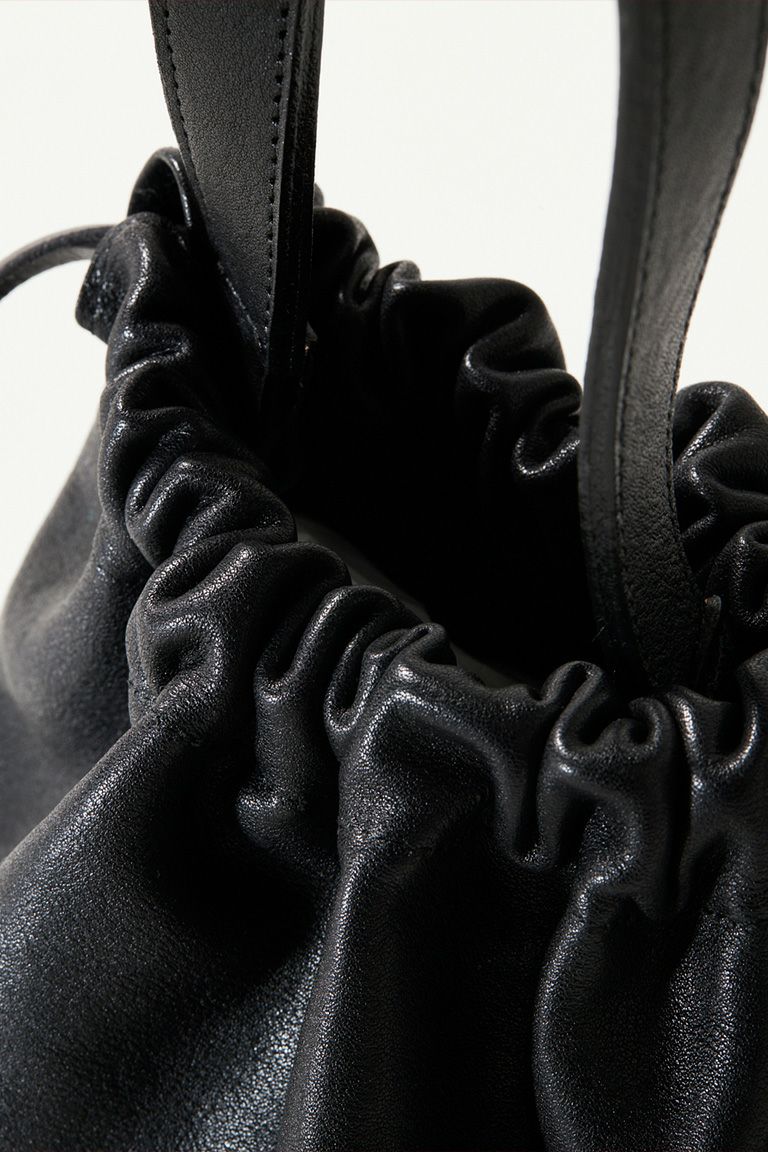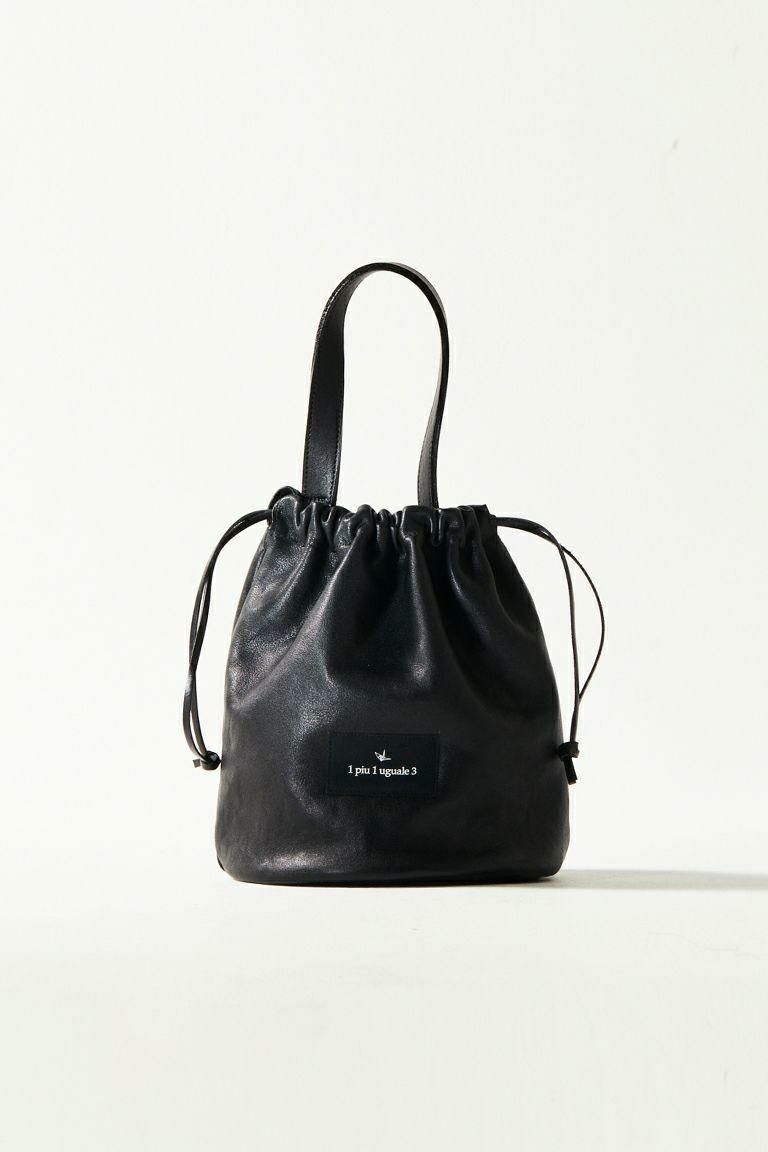高級感のある本革(牛)をふんだんに使用した 1PIU1UGUALE3の巾着バッグの登場です。 シンプルでありながら、シリコンタグがアイキャッチーで、 エッジの効いた巾着バッグです。 本革のドローコードで開閉しやすく、 使いやすさも抜群です。 ライニングは合皮スエードを使用しています。 綺麗目にもカジュアルにもテイストを選ばず合わせることができます。