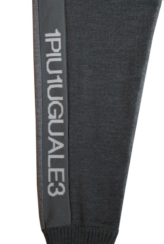 素材:キャッシュウール 2/30 イタリアの老舗紡績メーカー「ZEGNA BARUFFA社」 の厳選された繊維長の長い最高の羊毛を使用。 シルクのような光沢と、 カシミヤに似た柔らかな風合いと滑らかで優しい 肌触りに加え毛玉が出来にくいのが特徴です。 型はラップフードコート、ZIPパーカー、 イージーリブパンツの3型をご用意しました。 ベースニットは3本取りの7G(ゲージ)度詰め天竺で 手横機により編み立てています。 今期は同色系の濃淡2色を用いて、 パーツにより使い分けています。 両脇にポリエステル糸AMOSSA(アモッサ)にて編み立てた テープ地を上付けすることにより素材感の違いをだし、 右側のテープ上にのみ1PIU1UGUALE3ロゴを配色で表現し カジュアルでスポーティーな仕上がりになっております。