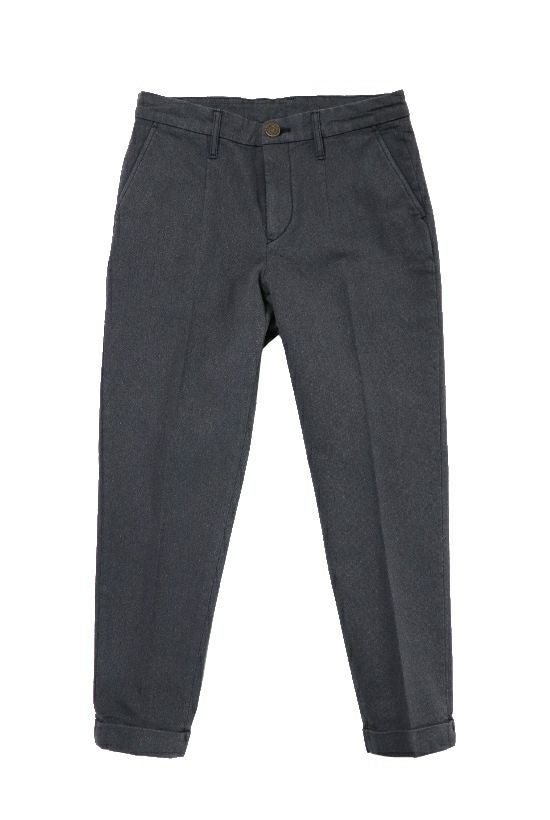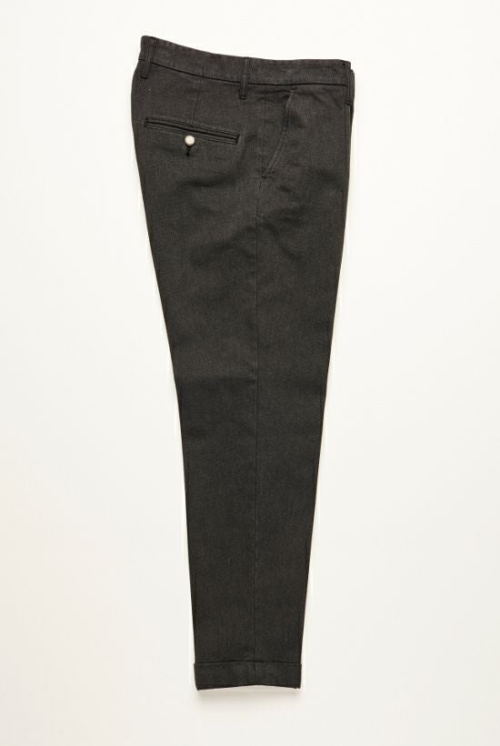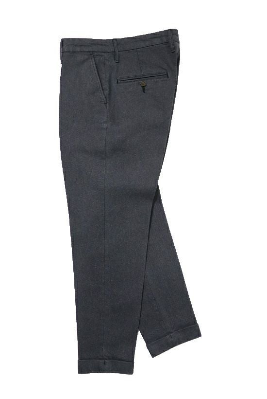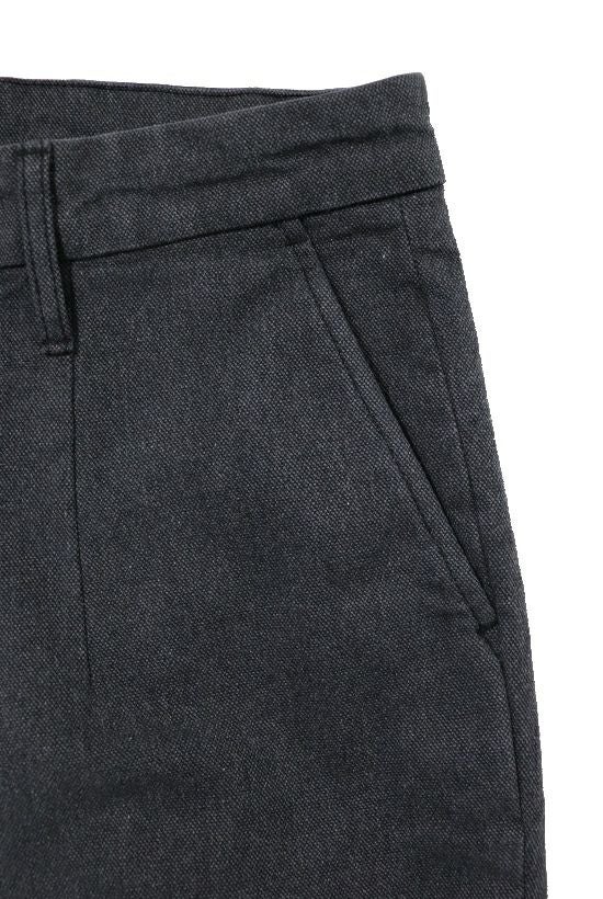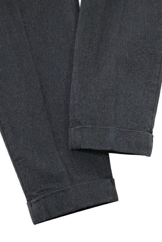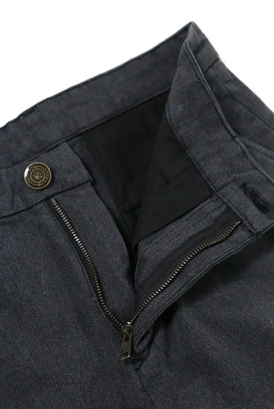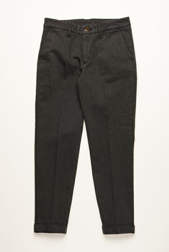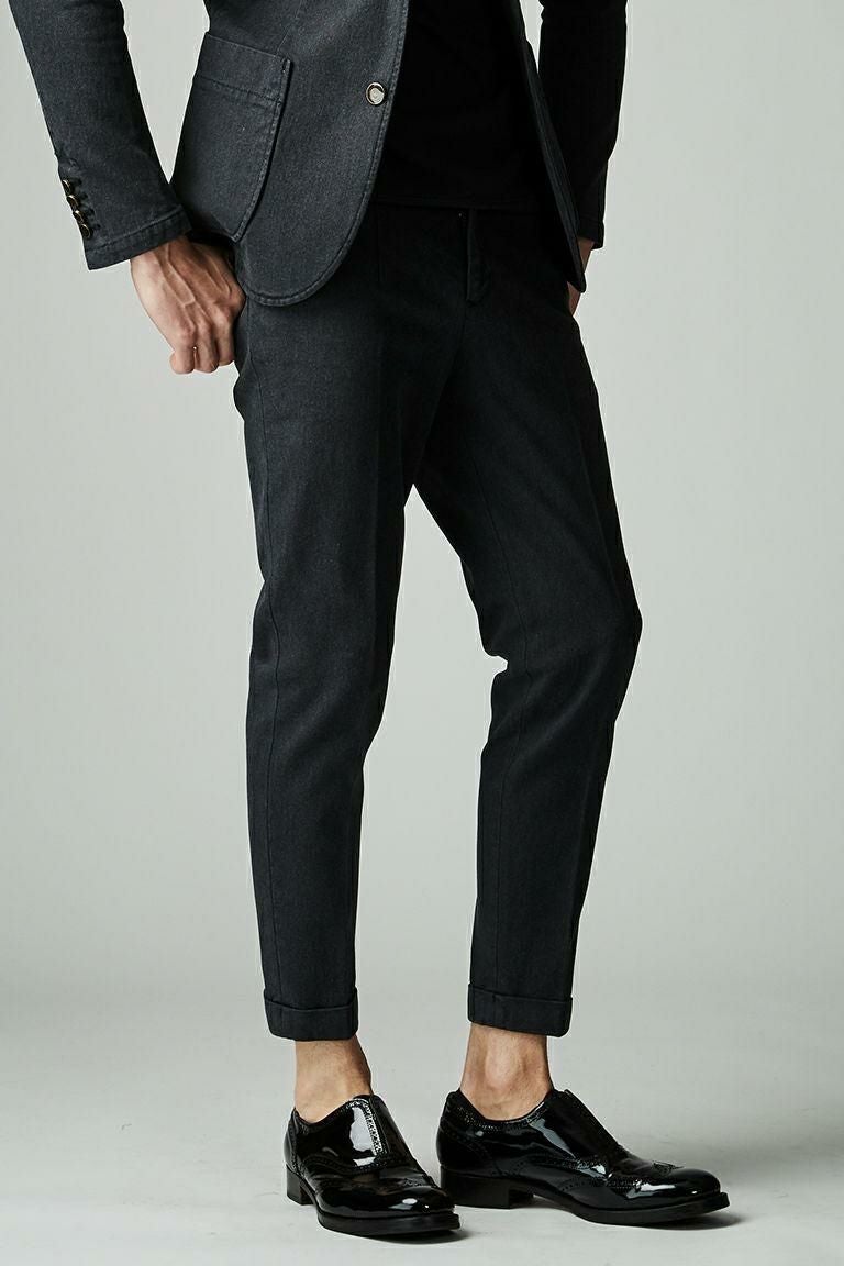 タイトフィットな”デニスラ”(デニムスラックス)と セットアップの2つ釦ジャケットの発表です。 カジュアルの代名詞的なデニム素材をドレッシーな セミピークドラペルで本切羽仕様のジャケットと センタープレス入りスラックスに落とし込みました。 印象的なメタル釦は1PIU1UGUALE3 オリジナルにて製作しています。 トラウザーの前開きは ZIP 仕様で後ポケットは 両玉縁ポケットにし、裾はダブルに仕上げています。 ヒゲ、アタリは品良く抑えめで、稀有な ストレッチOXデニムは美しいシルエットを生み、 着心地も抜群です。 ◇STRETCH OX DENIM TOP糸とはわたから染めて作った糸のことで、 わたから染めているので一般的に 色落ちしにくいことが特徴です。 杢とは異色の糸を、2本以上より合わせた 糸生地にすると色が混ざり合って、 杢の見え方になるのが特徴です。 最大の生地の特徴は経糸がTOP糸のムラ糸では、 今まで作っていませんでした。 オックスの織は引き揃えで織る素材なのでムラ糸を 使用しないと製品洗い後の表情が全然違ってきます。 製品になって見たときに、 ストレッチ感を感じない面に仕上がっています。