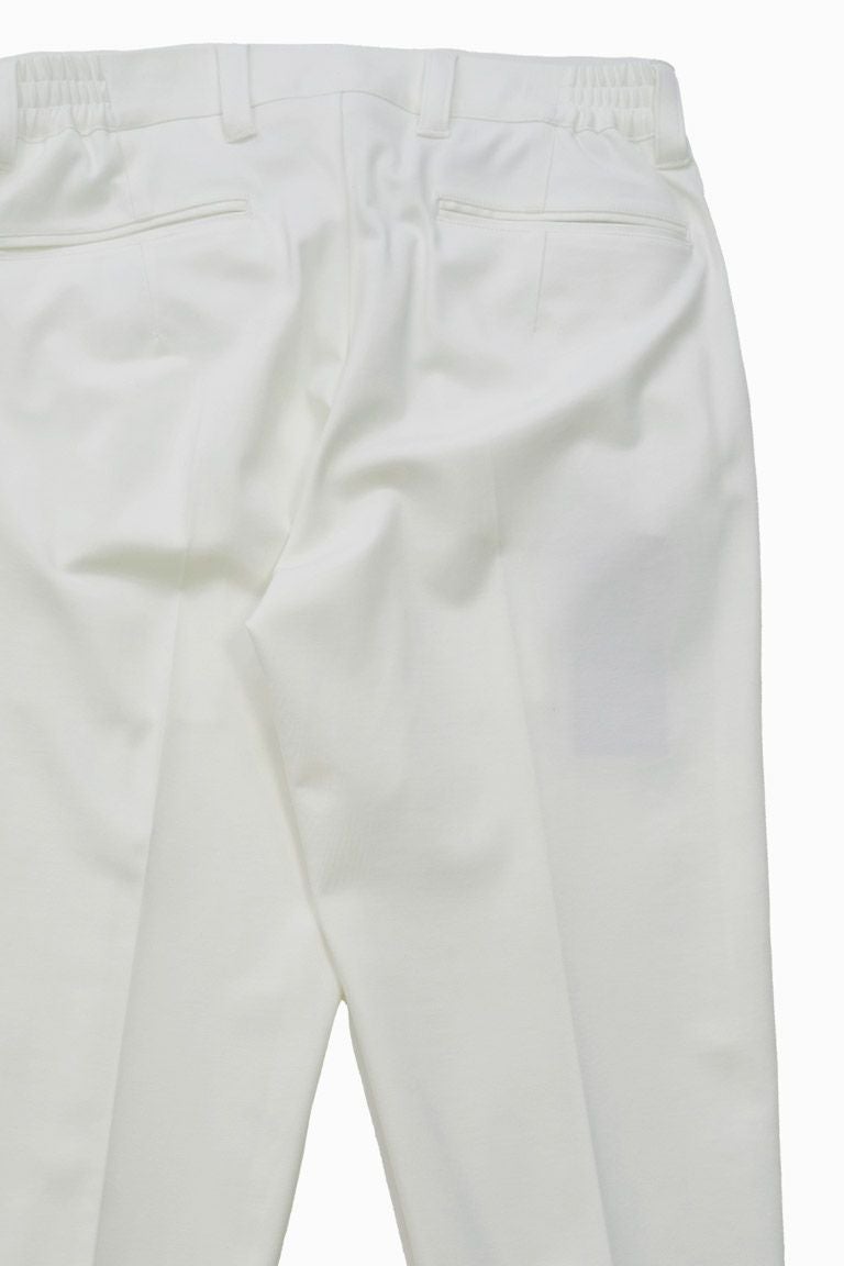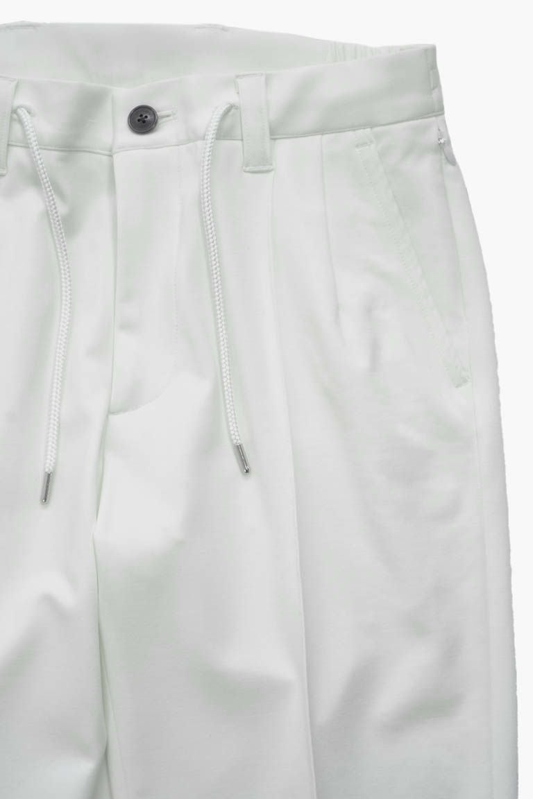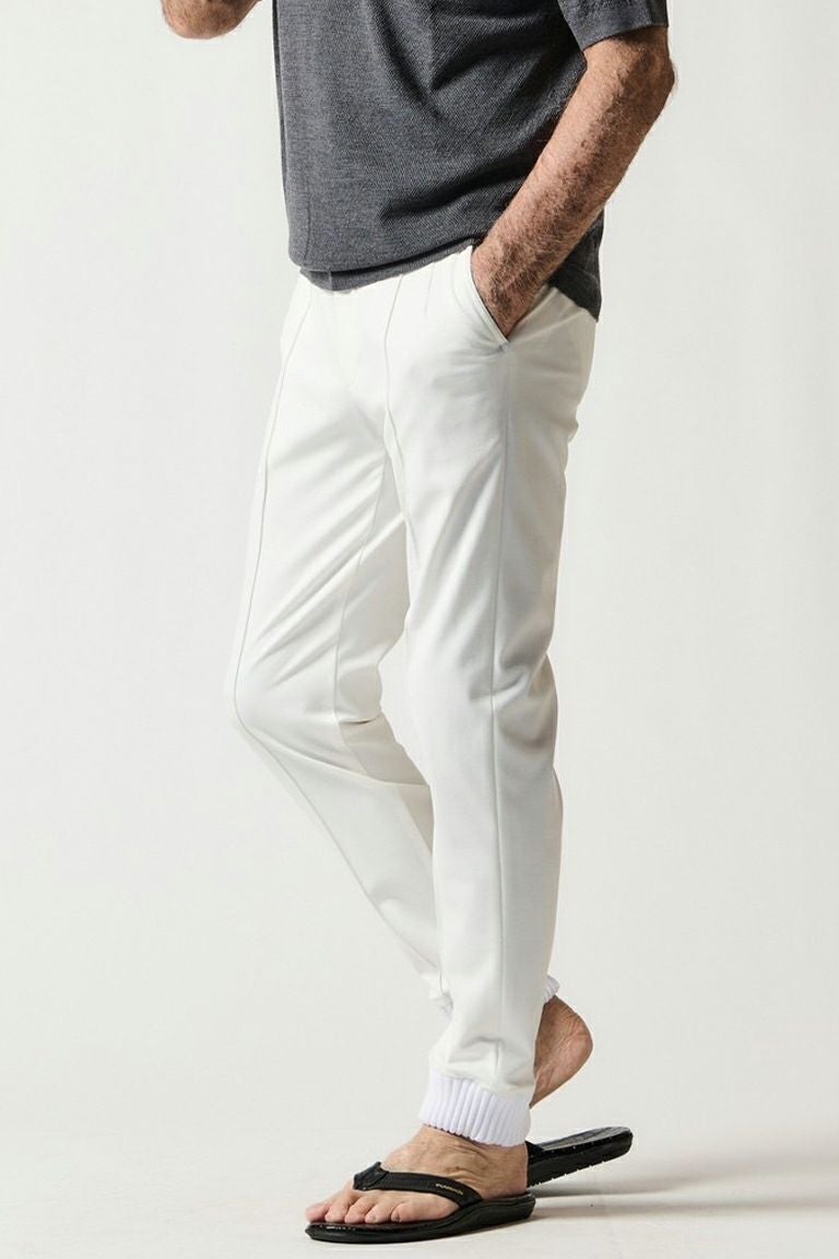 フロントのセンタークリースが特徴的で、裾始末はスポーティーな編立リブ仕立て。