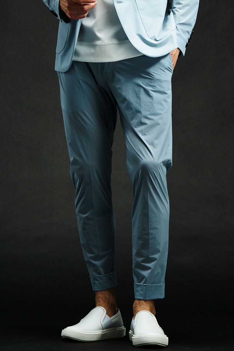 KAJI NYLON 4WAY LIGHT 伸縮性のあるポリウレタン糸を軸に、 素長繊維であるナイロンを巻き付けた極細の加工糸の 素特殊弾性糸=FTY(フィラメントツイストヤーン)を使用し、 素特殊技術で実現した世界初の織物フリーカット素材。 切りっぱなしでもほつれにくく、シャープなカットラインと断面が新しい可能性を生み出します。 ポリウレタン(37%)使用している為、ストレッチがとても効いています。 また、リサイクル率73%と環境にも配慮した超軽量4WAYストレッチナイロンです。 さらさらとした清涼感溢れる質感で盛夏にも快適にご着用頂けます。 表地 : ナイロン63% ポリウレタン37%