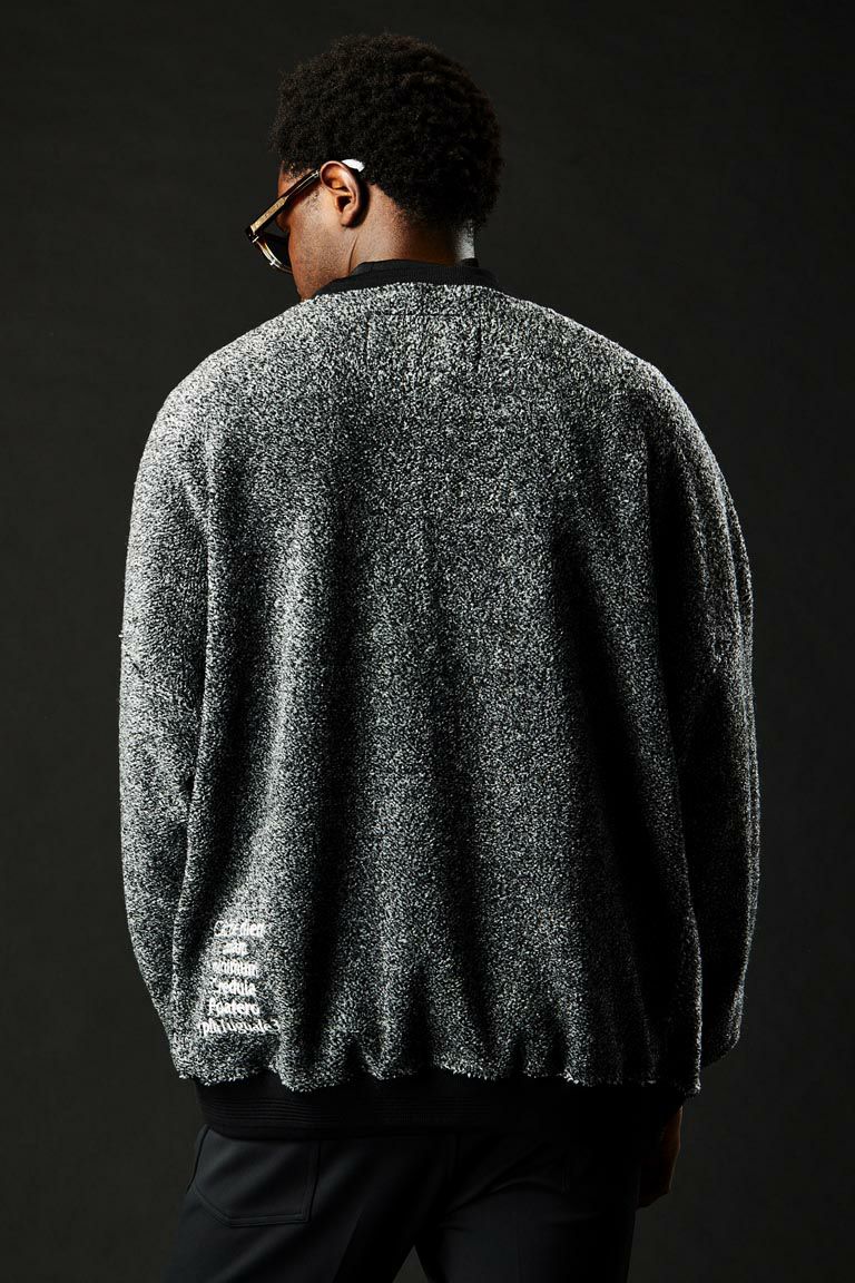 身頃素材には合繊糸でカール状に編み立てたBOA KNIT素材。