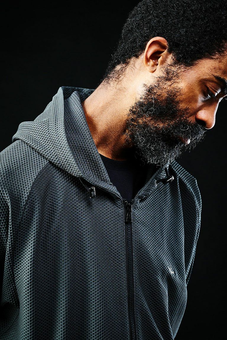 113LABEL同シリーズ定番のZIP PARKAに両袖をオリジナルジャガードリブを配置しより大人により贅沢なメッシュパーカーとして再リリース。