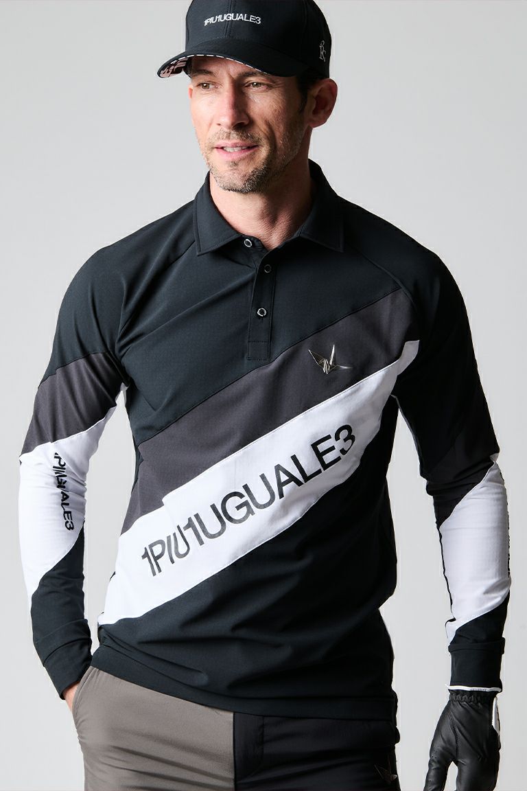 DIAGONAL SWITCH POLO L/S[BLACK]