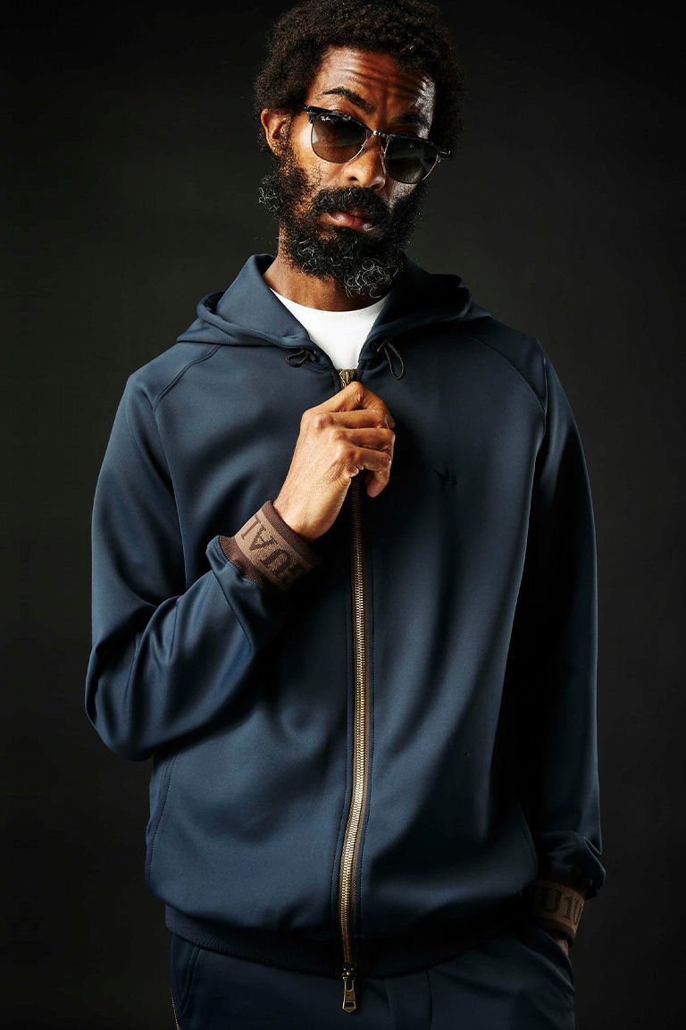 1PIU1UGUALE3 SPORT Vol.10 CLASSIC BOOST COLLECTION 113 SPORT COLLECTIONにおいて1ST EXHIBITIONより 開発・進化が繰り返さる「究極のラグジュアリーウエア」の 真骨頂であるBOOST JERSEYシリーズ。 上品で懐かしさをイメージした「CLASSIC SPORT DESIGN」 ニュービンテージと位置付け、極上の着心地を目的とした 贅を尽くしたプレミアムコレクション。 「極上のプレミアムスムースジャージーシリーズ」 Vol.10 COLLECTIONより発動される「CLASSIC SPORT」。 上質で気品のあるデザインコンセプト。 シンプル且つオールド感溢れるミッドネイトネイビー×クラシックブラウンが主張。 113 SPORT COLLECTIONの定番仕様/ラグランショルダー ZIP UP PARKA。 両袖にジャガードRIBを配置。 究極の肌触りと鋭い伸縮性を併せ持つ素材。 吸水速乾・UV軽減・シワ防止など上質 且つ機能性に優れ、完全ノンストレス。