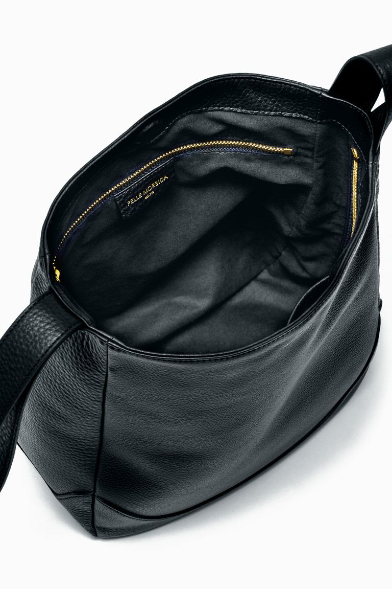 1PIU1UGUALE3×PELLE MORBIDAよりワンハンドバッグの登場です。 巾着バッグよりカジュアル感を抑えた構造がポイントです。 特別な行事や儀式でのオケージョンコーデとしても使用可能で、 ペットボトルや折りたたみ傘なども十分に収納できる容量で企画しています。 本体サイドに1PIU1UGUALE3オリジナルゴールドファスナーを追加し、 スエード調の裏地をブラックに変更している点が別注ポイントになります。 革はペッレモルビダ社のオリジナルシュリンクレザー(牛革)を採用しています。 丹念に下地をなめし、乾燥後に専用マシーンでバタ振りをすることで、 上品で味のあるシボ立ちを実現しています。 乾燥後に軽くアイロンがけを施し、表面の艶(つや)、光沢感を調整しています。 生産国:日本