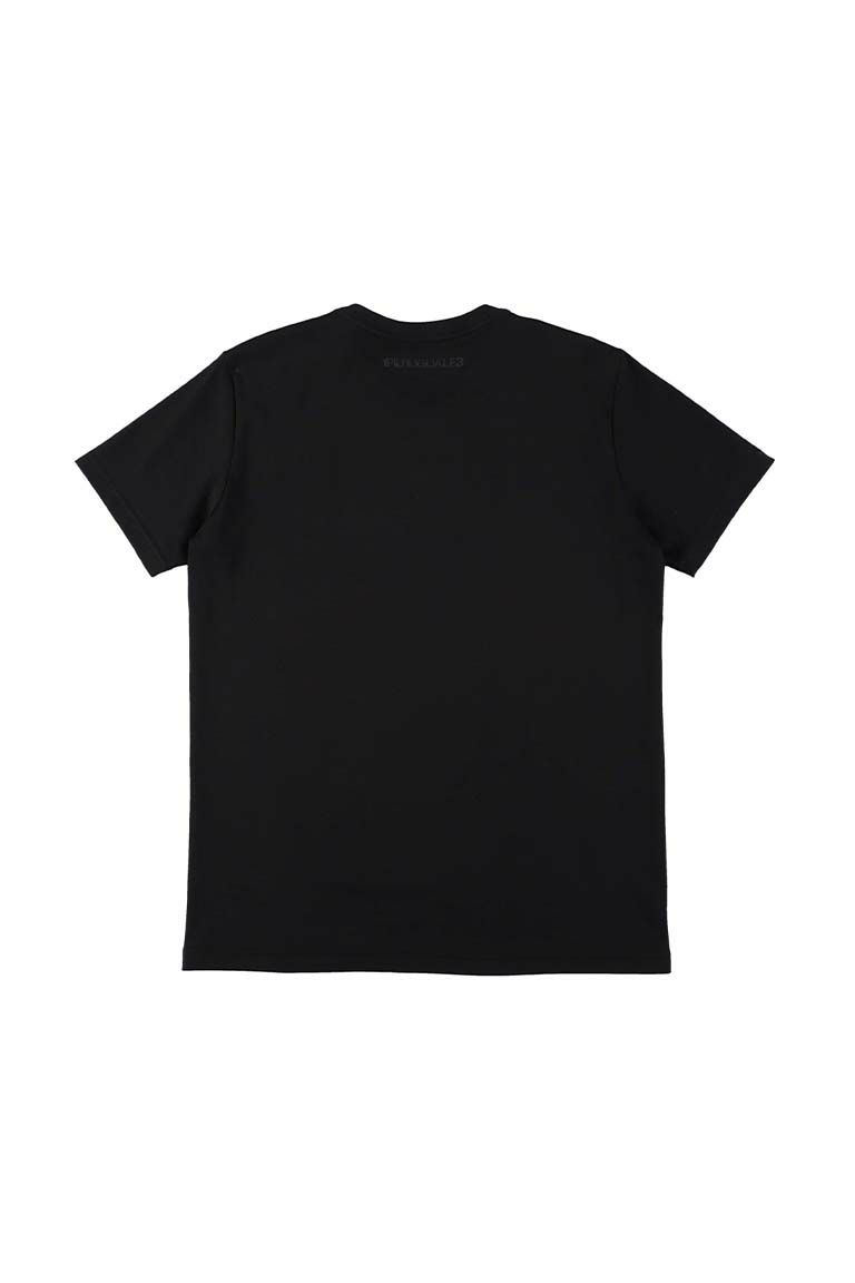 後首下の1PIU1UGUALE3ロゴは光沢ラバープリントを厚盛で立体的に表現しています。