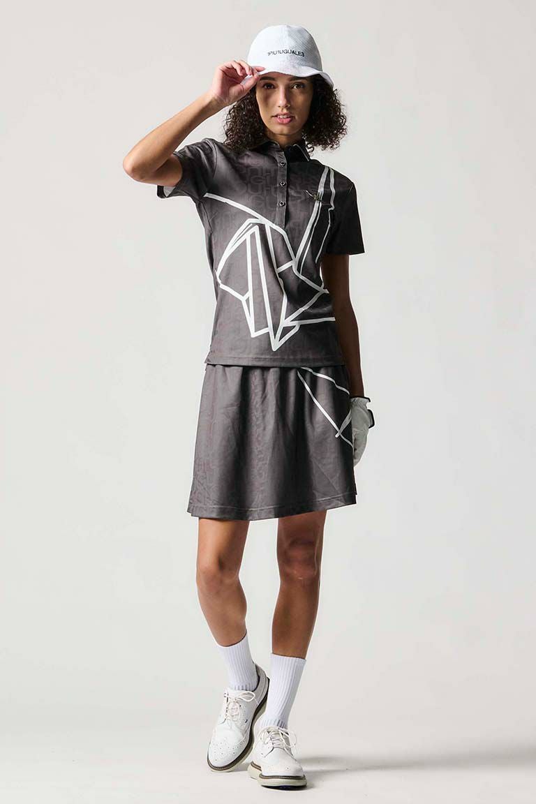 ブランドの象徴ともいえる折鶴をフロントに大胆にあしらったポロシャツです。 一見して目を向けるデザインは、洗練されたスタイリッシュな印象を演出します。 背面にはブランドネームが縦書きで構成され、 全体に統一感とバランスをもたらしています。 素材には高品質な生地を使用し、軽い着心地と通気性を実現。 シンプルなポロシャツの形も、折鶴のデザインが他とは一線を画す個性を持っています。 2色のカラー展開で、どちらの色を選んでも存在感が際立ちます。 機能性とファッション性を抑えたこちらのポロシャツは、 トレンドを意識しつつも飽きのこないデザインが魅力です。 1PIU1UGUALE3 GOLF(ウノピゥウノウグァーレトレ ゴルフ) 日本から世界に向けて発信するブランドとして世界中の上質な素材を贅沢に使用し、 ラグジュアリーな商品をリリースし続ける1PIU1UGUALE3。 ハイエンドラグジュアリーブランドが提案する、高いデザイン性とスポーツの機能美を併せ持ち 上質を知る全てのプレイヤーの為のウェアとしてリリースいたします。 革新的なハイテク素材を採用し、ただ派手な物ではなくテーラーリングを得意とする 同ブランドならではの立体パターンにより、洗練された高いデザイン性と 最高のフィッティングを兼ね備え着る者全てに高揚感と優越感をもたらします。