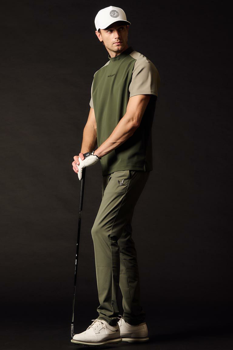 肩部分のカラーを切り替えたスポーティーなデザインが特徴のメンズモックネックです。 ゆとりあるシルエットとラグラン仕様の袖が動きやすさをサポートし、 肌当たりの良い素材で快適な着心地を実現。 マットな質感と程よい厚みが大人の高級感を演出します。 接触冷感機能を備え、春夏秋のラウンドや練習、トレーニングでも快適に活躍します。 NAVY、KHAKI、BLACKの3色展開で、 ラグラン型切り替えデザインが洗練された印象を添える一枚です。 1PIU1UGUALE3 GOLF(ウノピゥウノウグァーレトレ ゴルフ) 日本から世界に向けて発信するブランドとして世界中の上質な素材を贅沢に使用し、 ラグジュアリーな商品をリリースし続ける1PIU1UGUALE3。 ハイエンドラグジュアリーブランドが提案する、高いデザイン性とスポーツの機能美を併せ持ち 上質を知る全てのプレイヤーの為のウエアとしてリリースいたします。 革新的なハイテク素材を採用し、ただ派手な物ではなくテーラーリングを得意とする 同ブランドならではの立体パターンにより、洗練された高いデザイン性と 最高のフィッティングを兼ね備え着る者全てに高揚感と優越感をもたらします。 【ワッペンロゴに関するご注意】 本製品に使用しているワッペンロゴ(鶴+113G)は熱圧着加工にて取り付けを行っておりますが、 上質な生地を採用している為、素材特有の滑らかさや洗濯環境の影響により まれにワッペンが剥がれやすくなる場合がございます。 ※万が一剥がれが生じた場合は、弊社にて修理対応を承りますのでお気軽にご連絡ください。 **予約商品について** ※予約商品の変更・キャンセルはご注文日から原則3日以内にお願いいたします。 ※商品の画像は、サンプルのため、実際の製品とは仕様や加工、色み、サイズ等が若干異なる場合がございます。 ※入荷予定は多少前後する場合が御座いますのでご理解の上、ご了承ください。 ※生産の都合上、商品の納期遅延が生じる場合がございます。 ※生産上の都合により、減産・生産中止となった場合、商品がお届けできない場合は全額返金いたします。 ※予約商品は、システムの都合上、他商品との同時注文はできない仕様となっております。 ※ご予約商品のお取り置き・ご返品・キャンセルは原則承っておりません。 ■ご注文に際しては、上記をご了承いただいたものとさせていただきますので、ご了承ください。