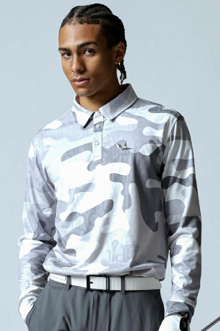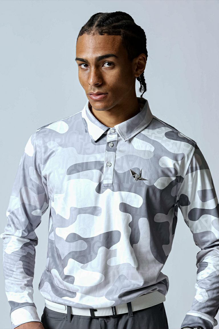 DIAGONAL SWITCH POLO L/S[WHITE]